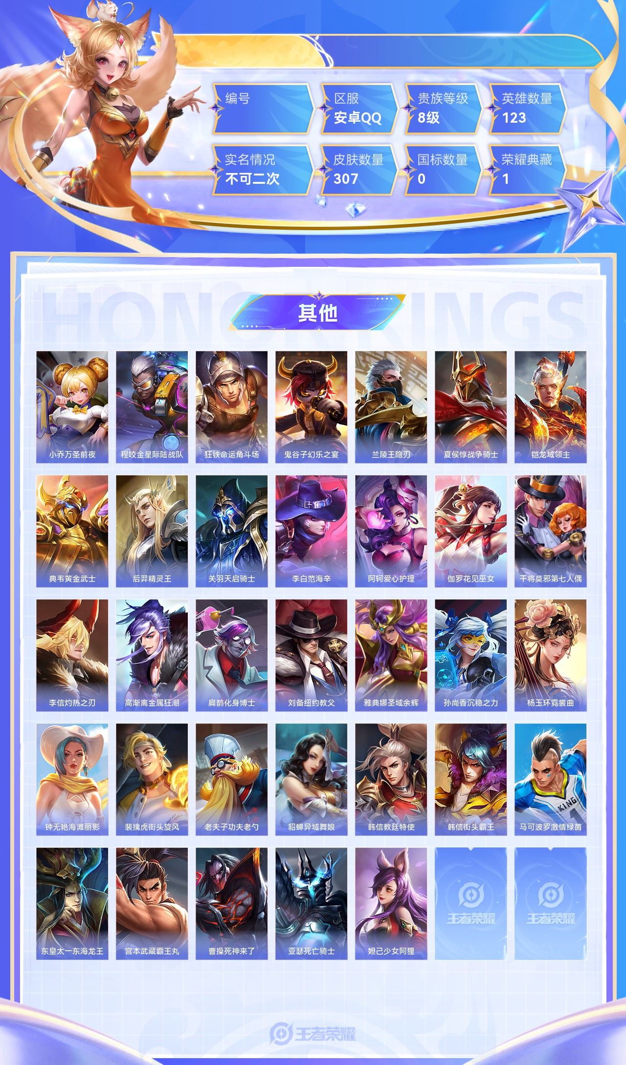 【终身找回包赔】【6SPRO1EDC】典藏1传说14史诗81限定93英雄123皮肤307稀有英雄9贵族8级皮肤价值:214242 【荣耀典藏1】孙悟空全息碎影 【传说皮肤14】云缨幻光神枪司空震愿照山