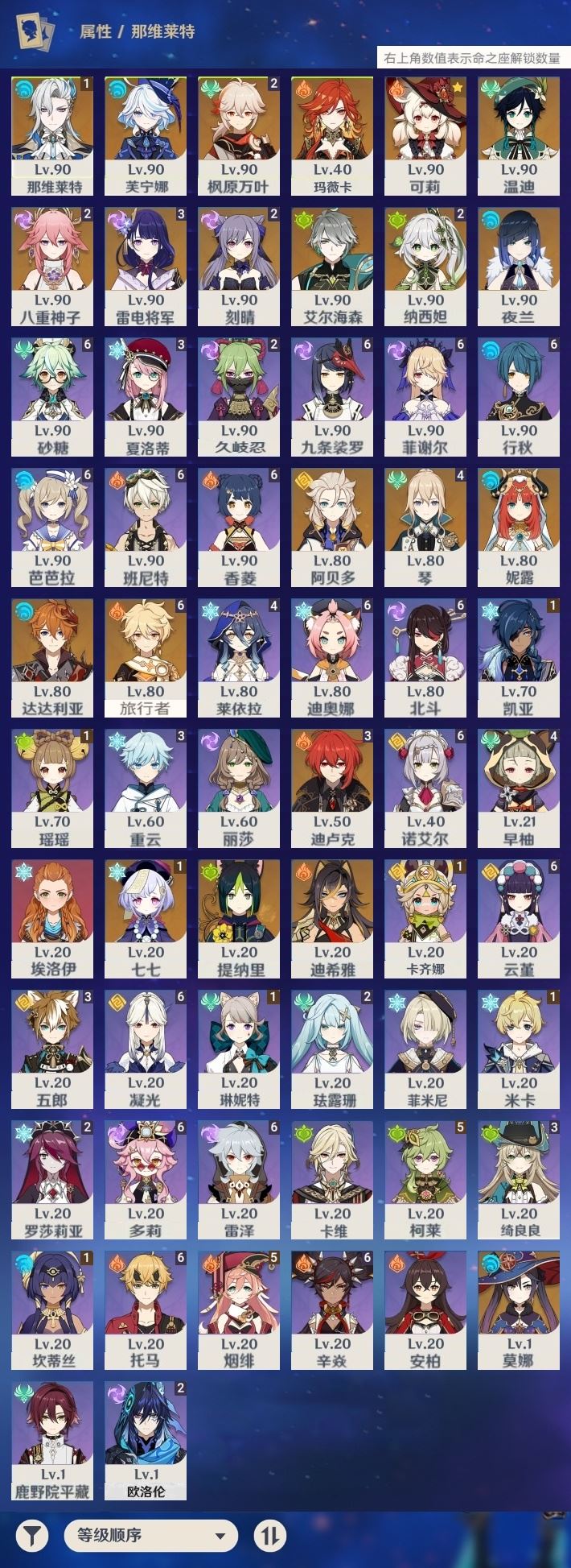 【终身找回包赔】【IIMSWFFGG】60级,58黄,男主,21个五星角色:4命琴,3命雷电将军,3命迪卢克,2命枫原万叶,2命八重神子,2命刻晴,2命纳西妲,1命那维莱特,1命七七,芙宁娜,玛薇卡,