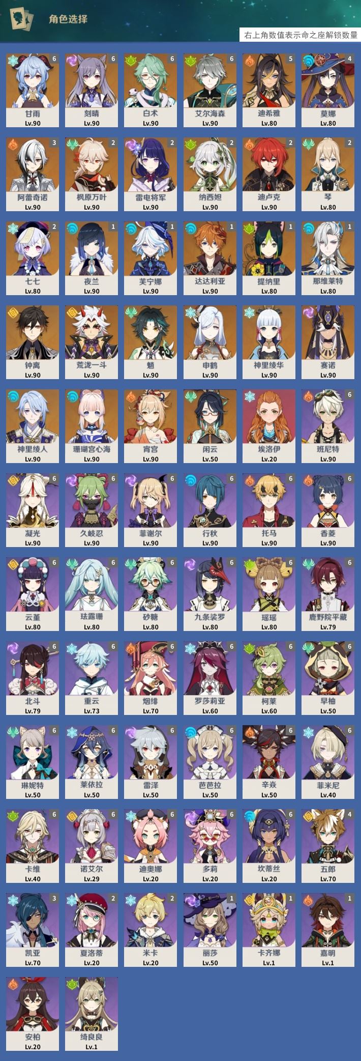 【终身找回包赔】【IIMSWCCAA】60级,119黄,女主,29个五星角色:满命甘雨,满命刻晴,满命白术,满命艾尔海森,5命迪希雅,4命莫娜,3命阿蕾奇诺,2命枫原万叶,2命雷电将军,2命纳西妲,2