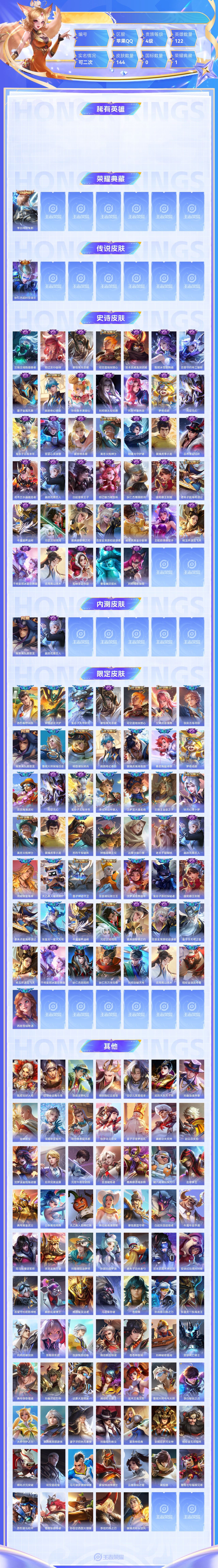 【终身找回包赔】【6VN60B1A1】典藏1传说1史诗40限定50英雄122皮肤144稀有英雄8贵族4级皮肤价值:105884 【荣耀典藏1】李白鸣剑曳影 【传说皮肤1】狄仁杰超时空战士 【史诗皮肤4