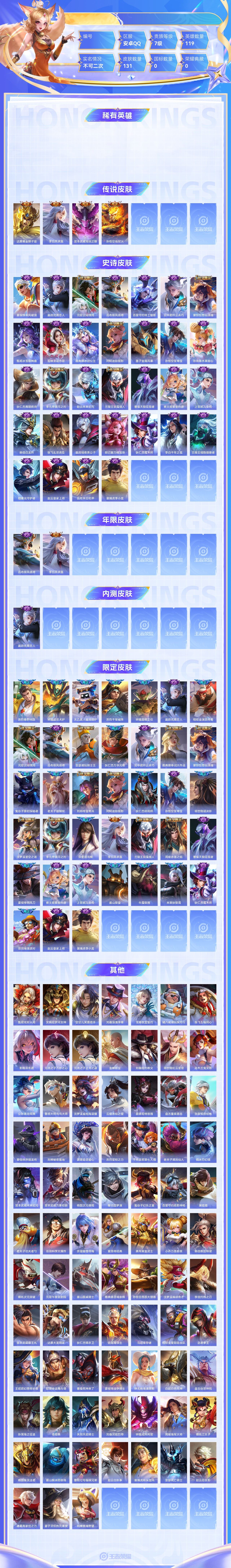 【终身找回包赔】【6Q0QUC1FE】传说4史诗32限定38英雄119皮肤131稀有英雄7贵族7级皮肤价值:74964 【传说皮肤4】达摩黄金狮子座李白凤求凰宫本武藏地狱之眼孙悟空地狱火 【史诗皮肤3