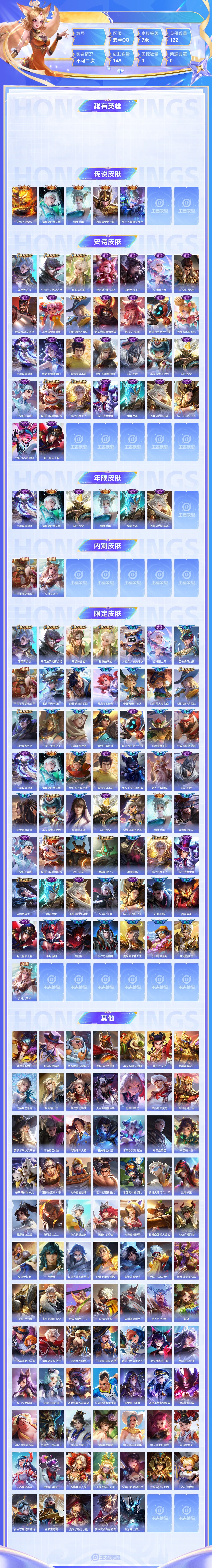 【终身找回包赔】【6VMZ7AFE2】传说5史诗30限定57英雄122皮肤149稀有英雄9贵族7级皮肤价值:83056 【传说皮肤5】孙悟空地狱火诸葛亮时雨天司伽罗太华后羿黄金射手座狄仁杰超时空战士