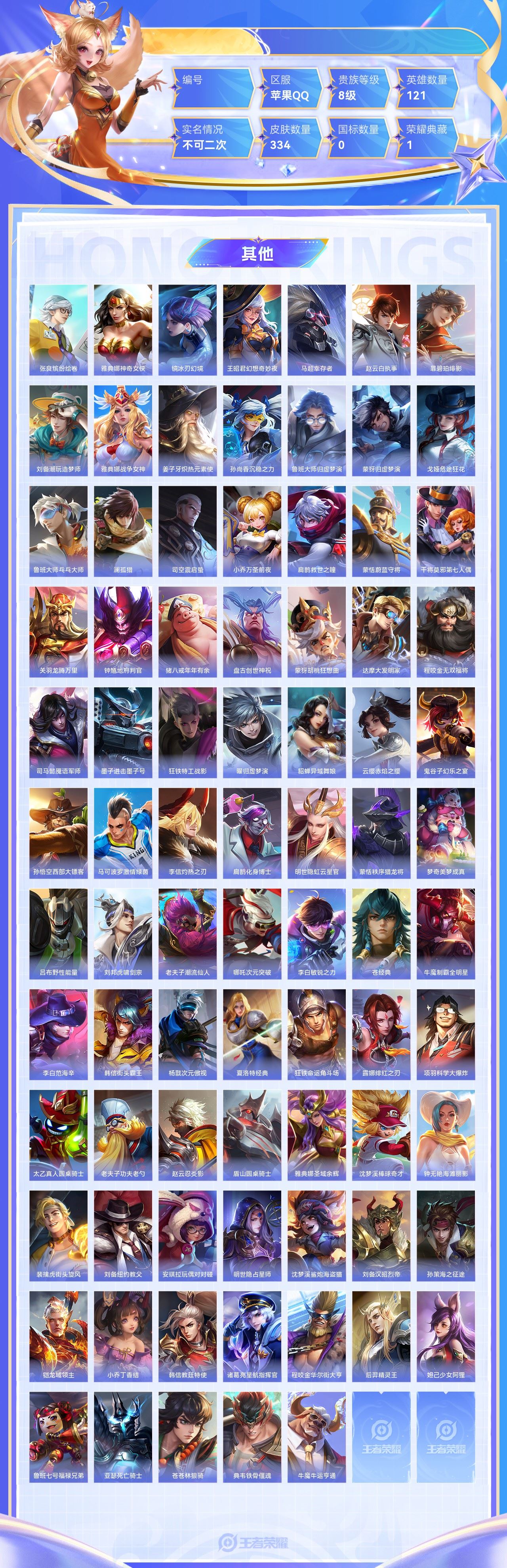 【终身找回包赔】【6XJTVFHF2】无双1典藏1传说19史诗91限定99英雄121皮肤334稀有英雄8贵族8级皮肤价值:243608 【无双皮肤1】李白碎月剑心 【荣耀典藏1】韩信弑枪猎影 【传说皮