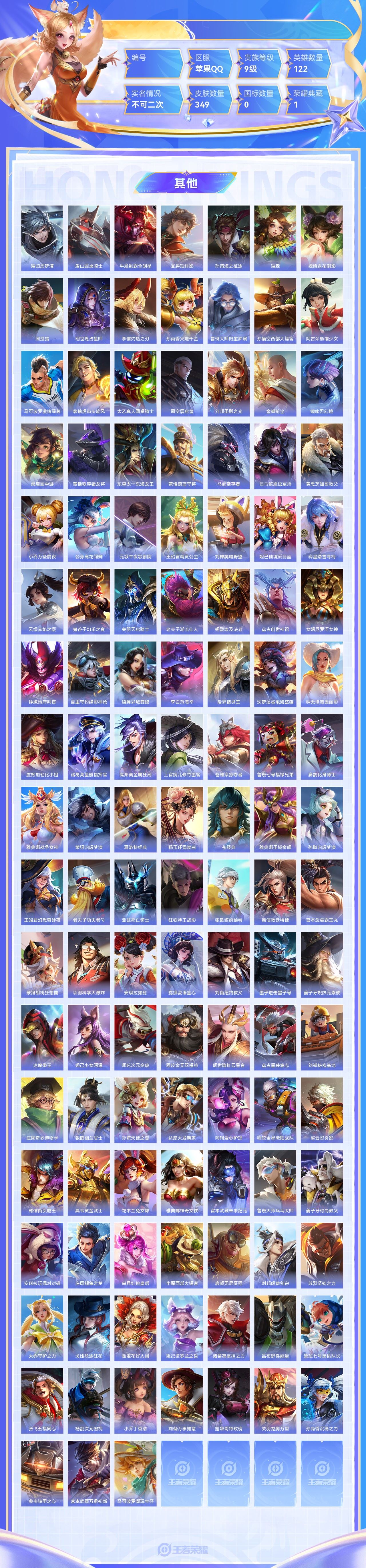 【终身找回包赔】【6XJTVAEE2】典藏1传说30史诗108限定125英雄122皮肤349稀有英雄9贵族9级皮肤价值:272732 【荣耀典藏1】诸葛亮星域神启 【传说皮肤30】澜愿照九州拓桑启鸣野