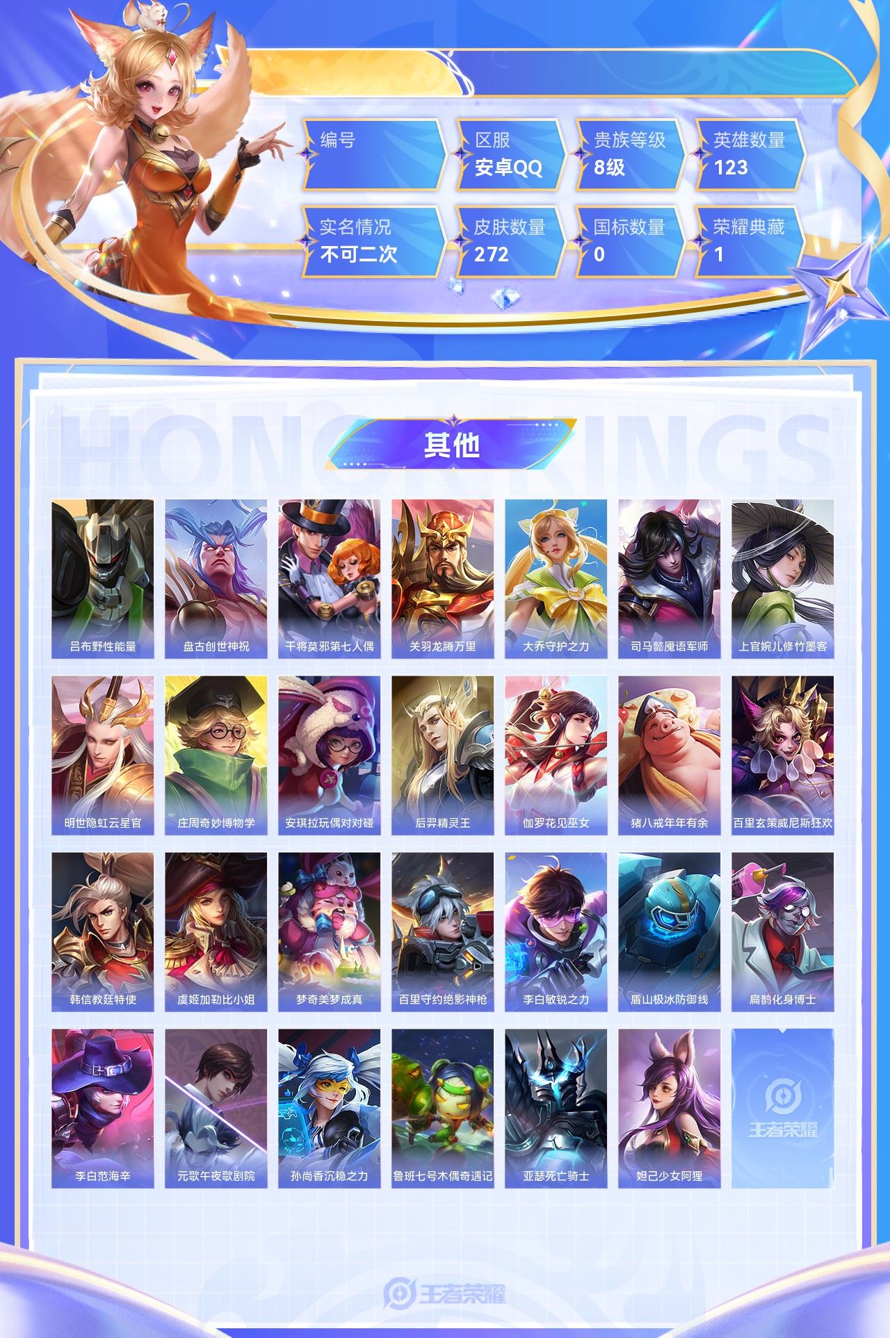【终身找回包赔】【6XJTVHHED】珍品传说1典藏1传说24史诗80限定98英雄123皮肤272稀有英雄9贵族8级皮肤价值:210096 【珍品传说1】马可波罗怪盗基德 【荣耀典藏1】铠银白咏叹调