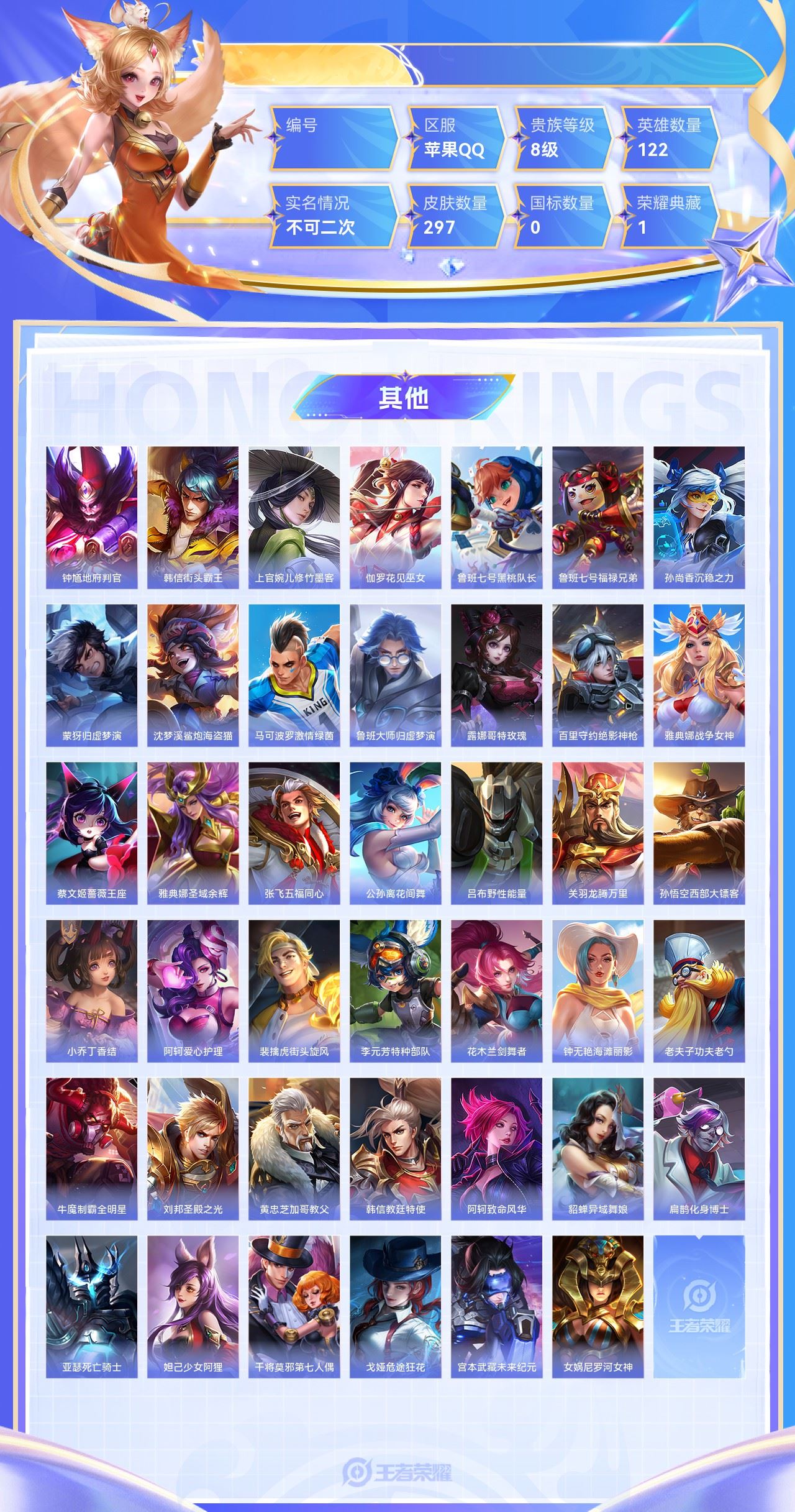 【终身找回包赔】【6SMWYAH1A】珍品传说1典藏1传说12史诗89限定105英雄122皮肤297稀有英雄9贵族8级皮肤价值:212102 【珍品传说1】孙策时之奇旅 【荣耀典藏1】貂蝉幻阙歌 【传