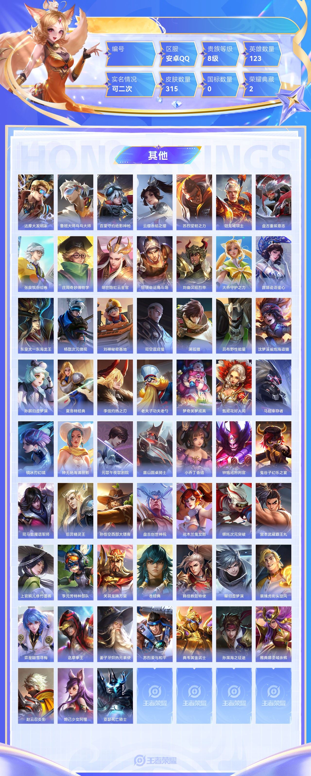 【终身找回包赔】【6SMWYFCF1】无双1典藏2传说27史诗78限定86英雄123皮肤315稀有英雄9贵族8级皮肤价值:254876 【无双皮肤1】李白碎月剑心 【荣耀典藏2】虞姬神鉴启示录李白鸣剑