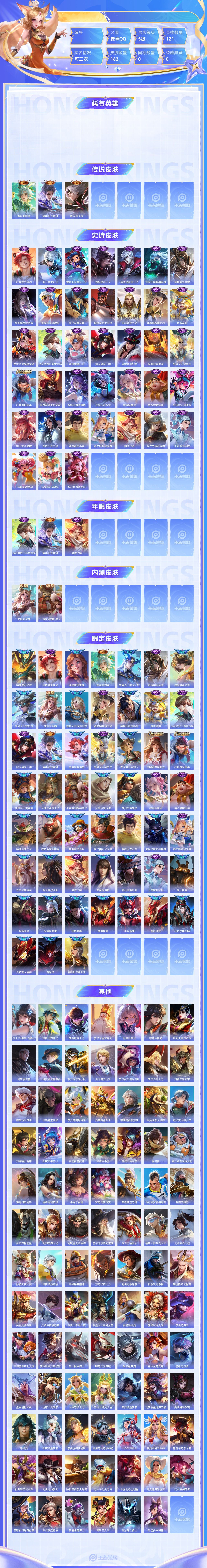 【终身找回包赔】【60RILAHFD】传说3史诗38限定52英雄121皮肤162稀有英雄8贵族5级皮肤价值:106860 【传说皮肤3】桑启鸣野蒿曜山海苍雷引曜云鹰飞将 【史诗皮肤38】狂铁龙之律动赵