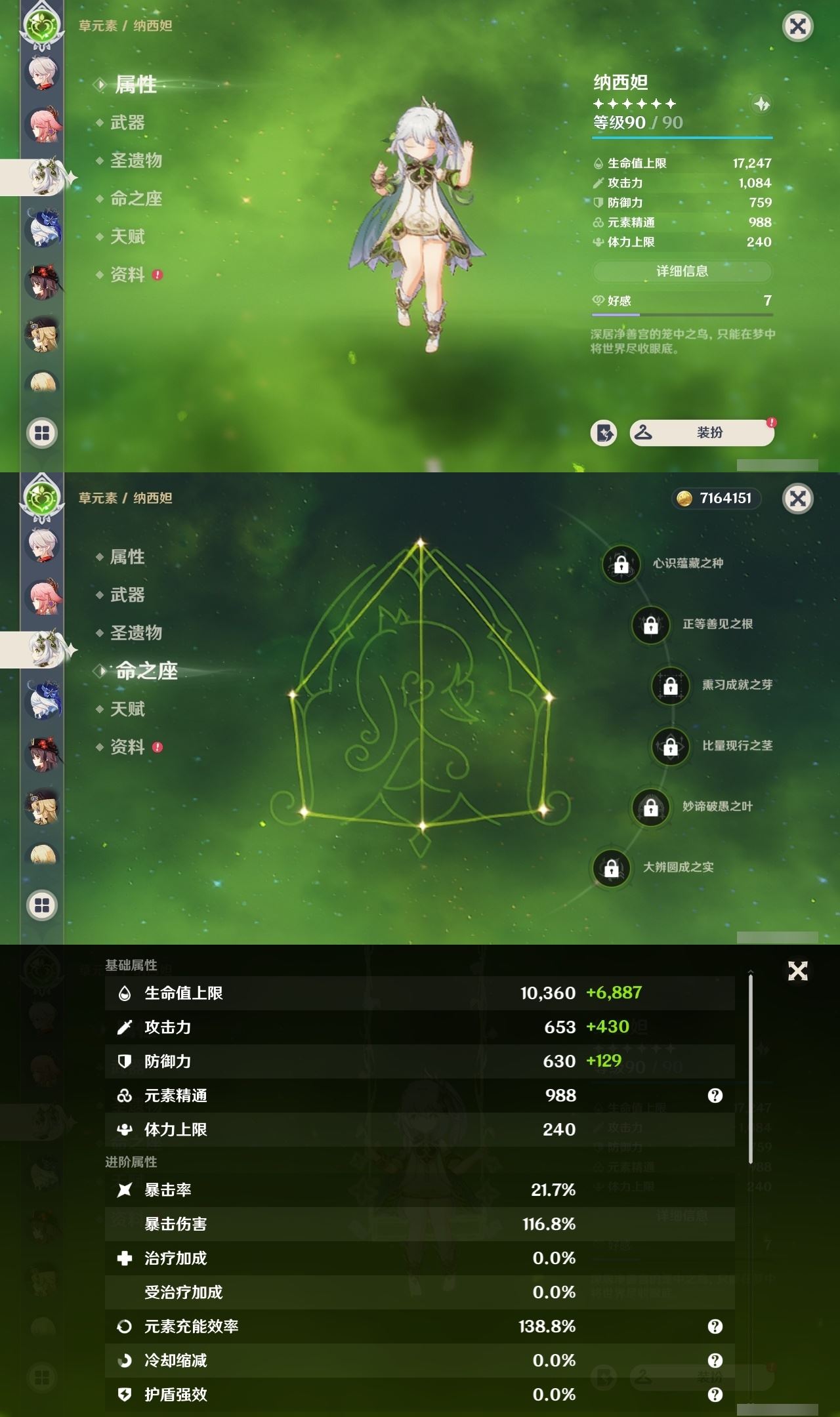 【终身找回包赔】【IOVOTDEFG】57级,21黄,女主,13个五星角色:2命流浪者,1命刻晴,茜特菈莉,枫原万叶,八重神子,纳西妲,芙宁娜,胡桃,娜维娅,琴,迪卢克,提纳里,七七,5个五星武器:精