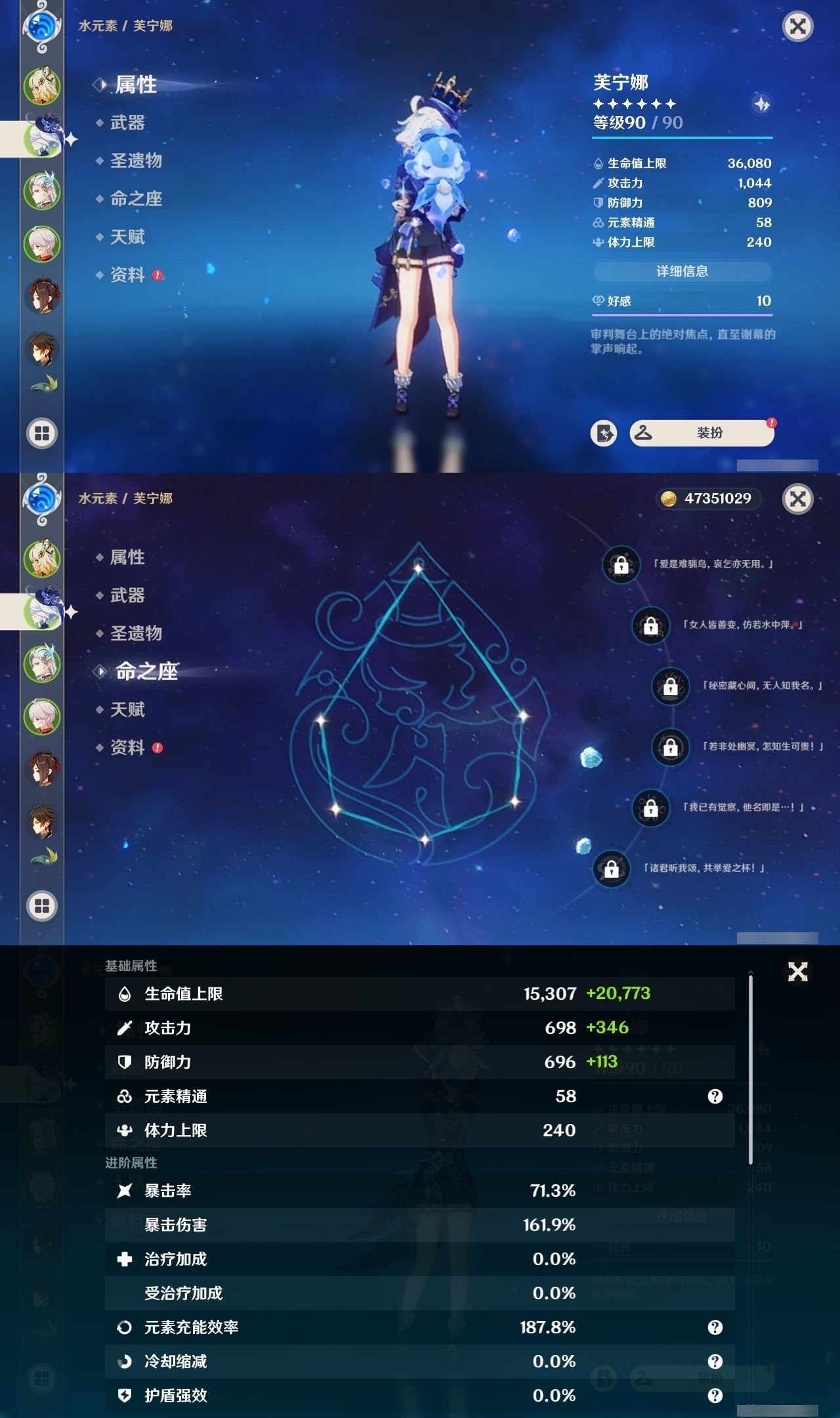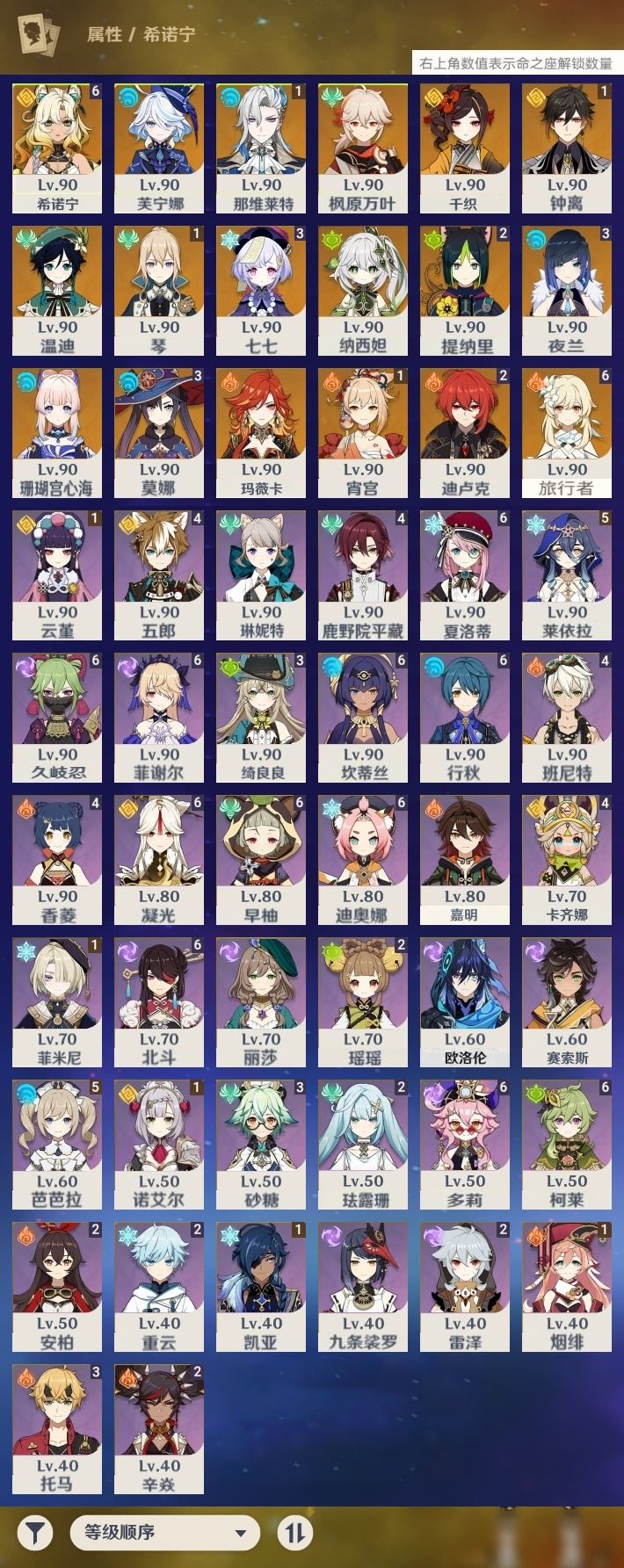 【终身找回包赔】【IOVOTH1CF】60级,53黄,女主,17个五星角色:满命希诺宁,3命七七,3命夜兰,3命莫娜,2命提纳里,2命迪卢克,1命那维莱特,1命钟离,1命琴,1命宵宫,芙宁娜,枫原万叶