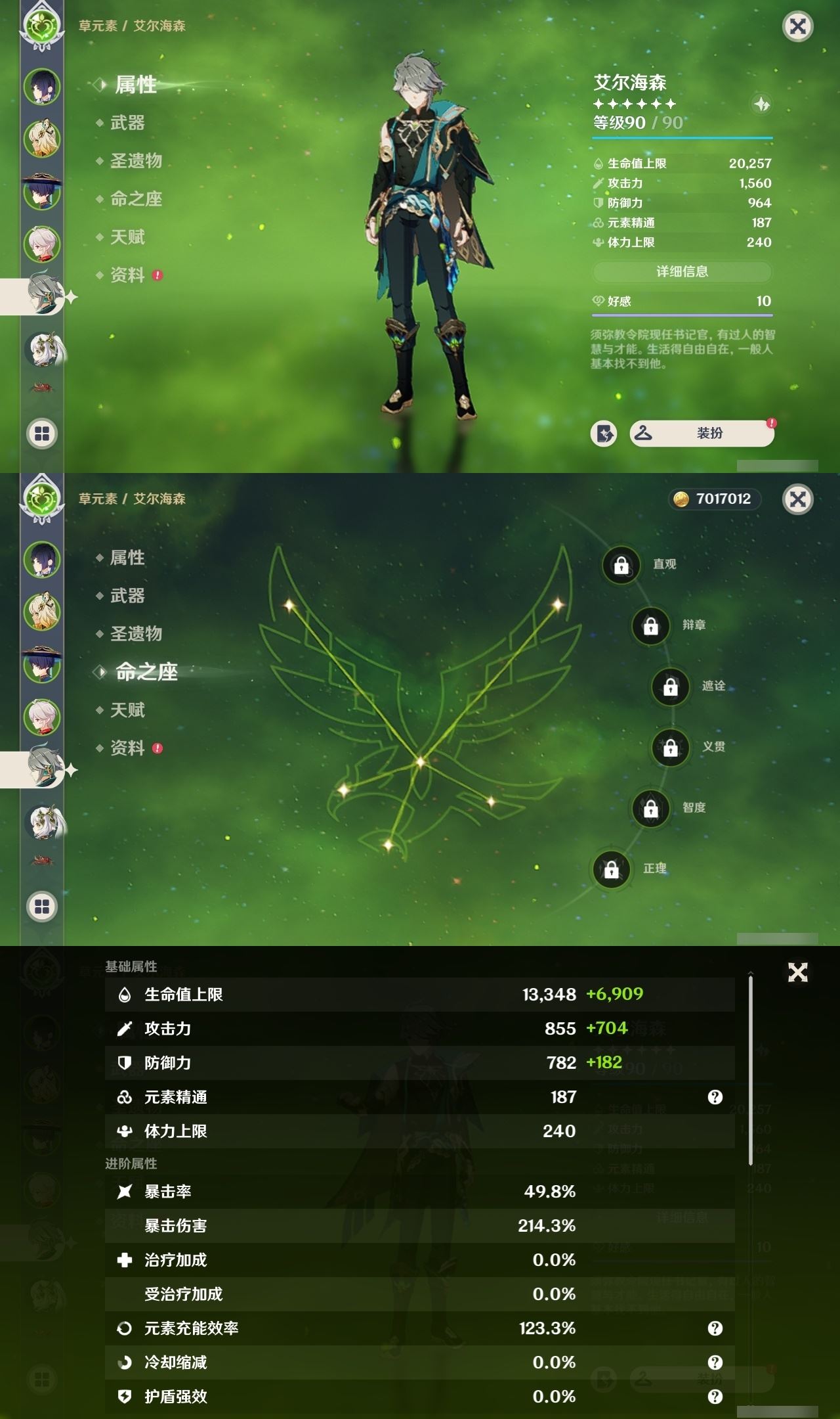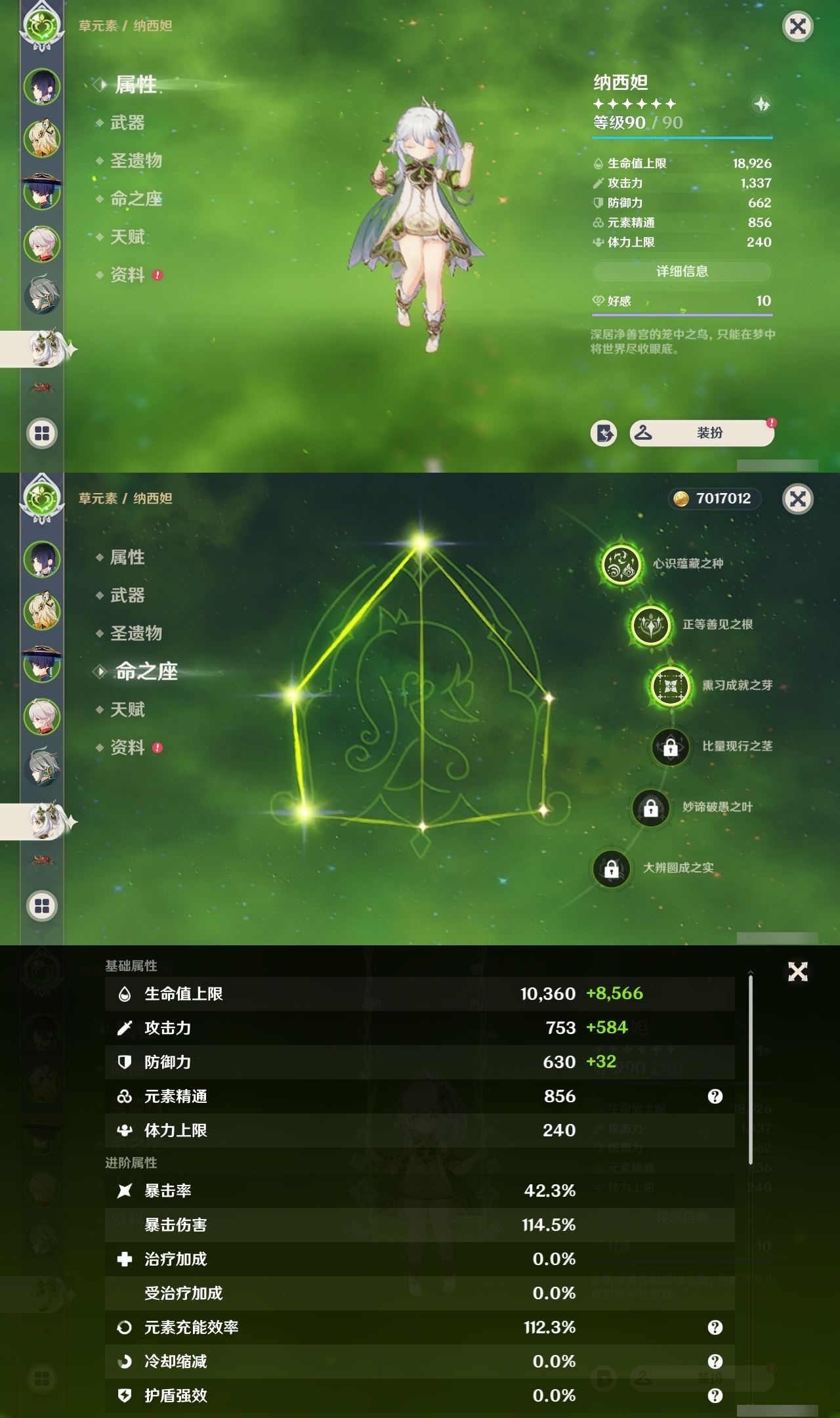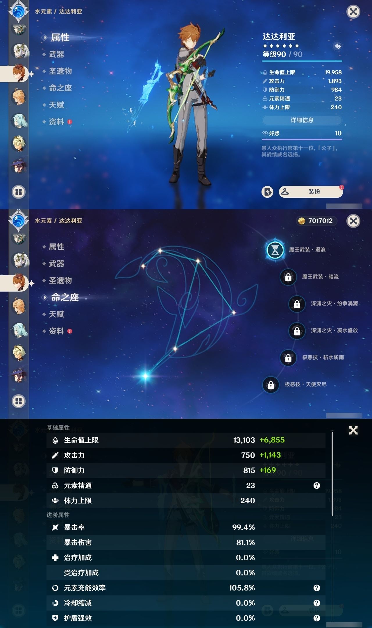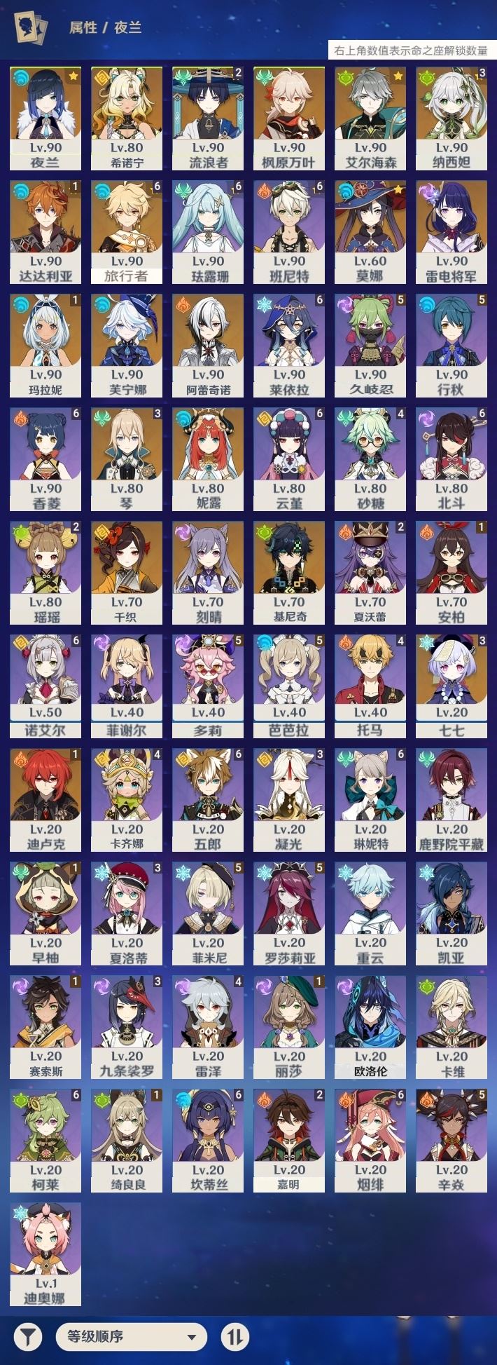 【终身找回包赔】【IOVOT1DFA】59级,39黄,男主,19个五星角色:3命纳西妲,3命琴,3命七七,2命流浪者,1命达达利亚,1命玛拉妮,1命迪卢克,夜兰,希诺宁,枫原万叶,艾尔海森,莫娜,雷电