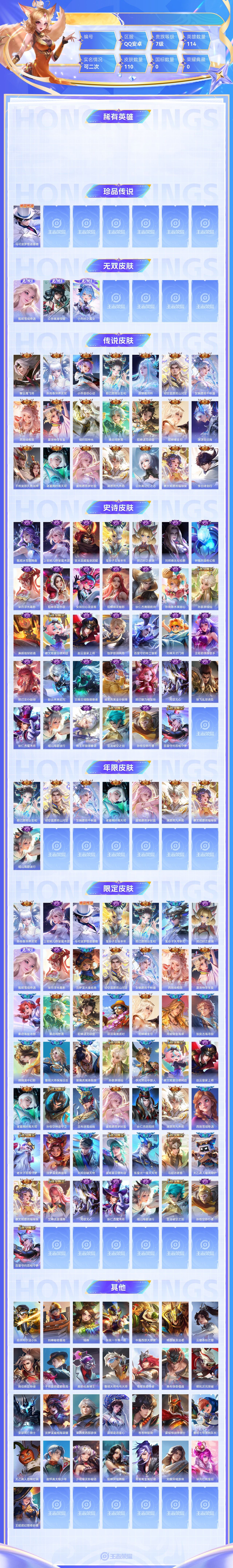 【终身找回包赔】【63MSTECBC】珍品传说1无双3传说21史诗34限定50英雄114皮肤110稀有英雄7贵族7级皮肤价值:89528 【珍品传说1】马可波罗怪盗基德 【无双皮肤3】甄姬雪境奇遇公孙
