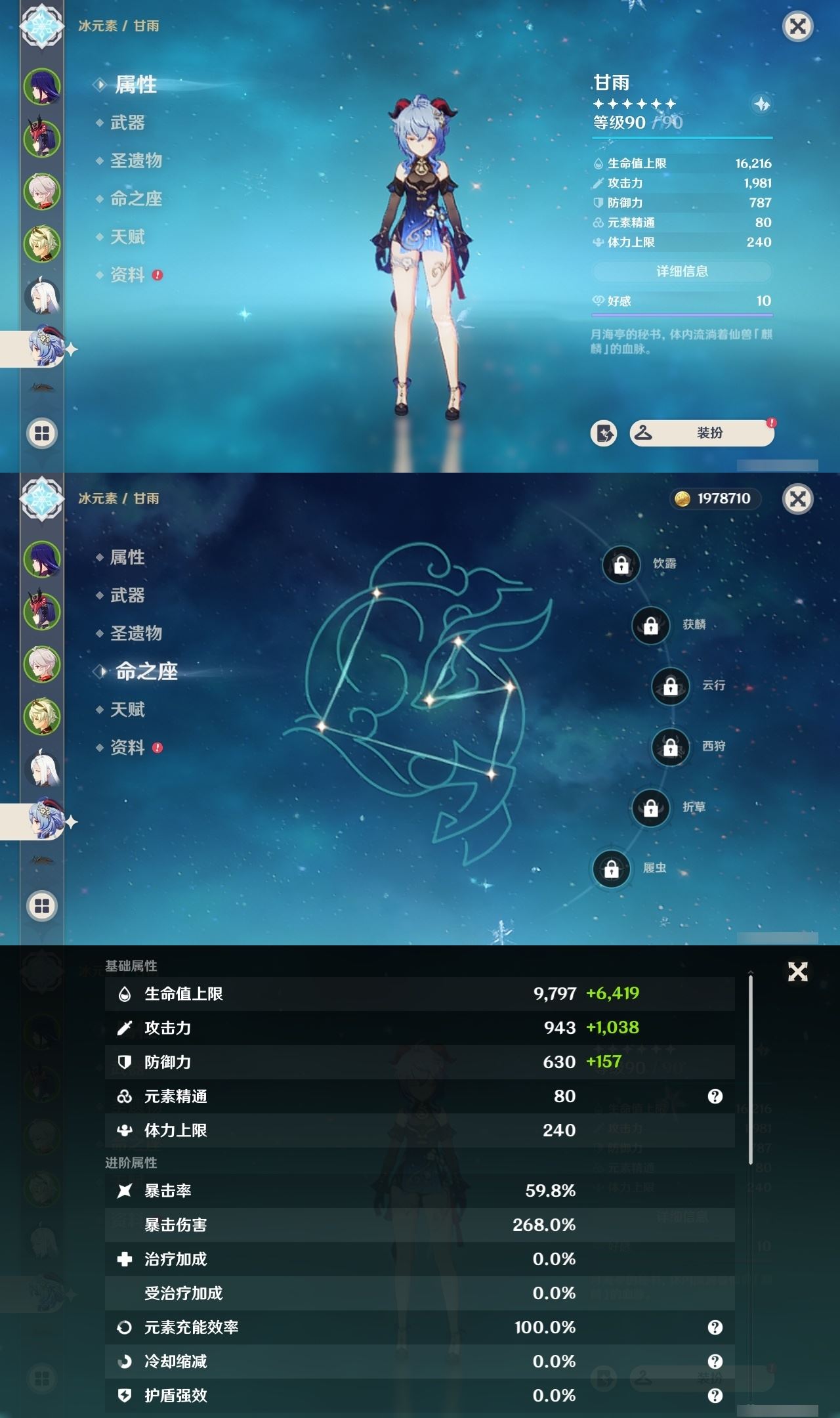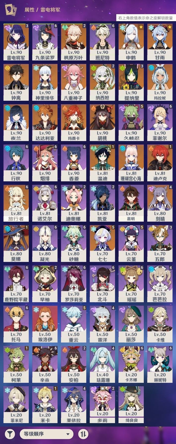 【终身找回包赔】【IOVOTEAAG】60级,57黄,女主,20个五星角色:5命七七,4命刻晴,3命雷电将军,3命提纳里,2命枫原万叶,2命纳西妲,1命温迪,1命迪卢克,1命莫娜,申鹤,甘雨,钟离,神