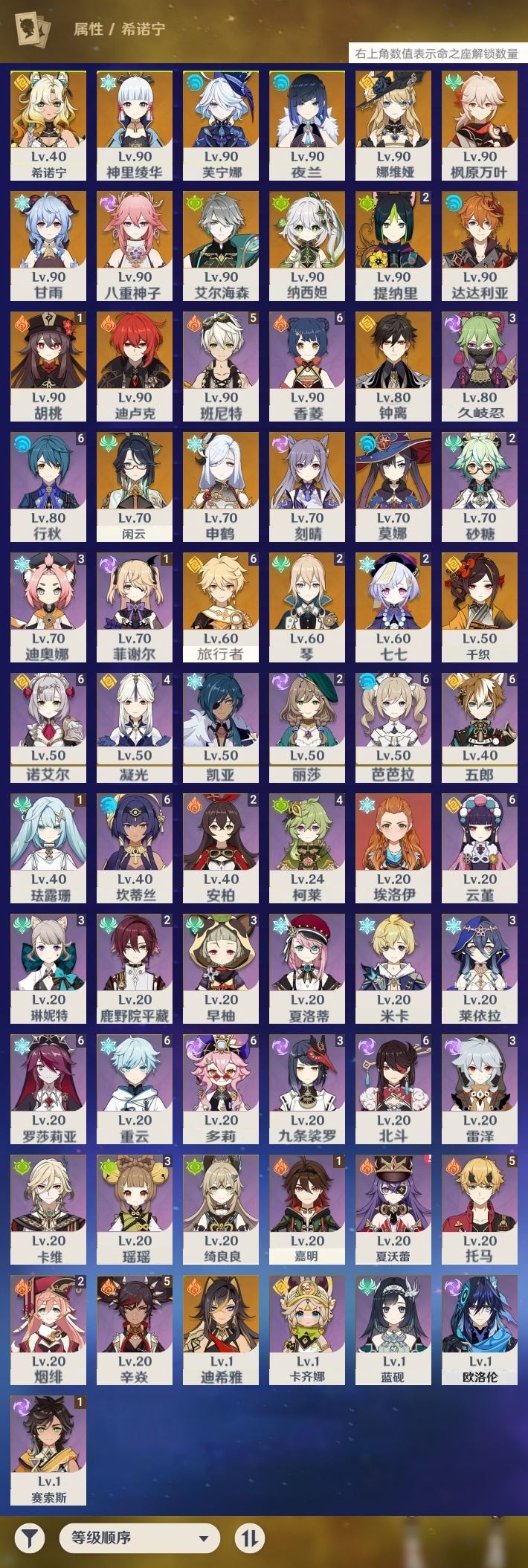 【终身找回包赔】【IOVOTFAH2】58级,41黄,男主,23个五星角色:2命提纳里,2命琴,2命七七,1命胡桃,希诺宁,神里绫华,芙宁娜,夜兰,娜维娅,枫原万叶,甘雨,八重神子,艾尔海森,纳西妲,