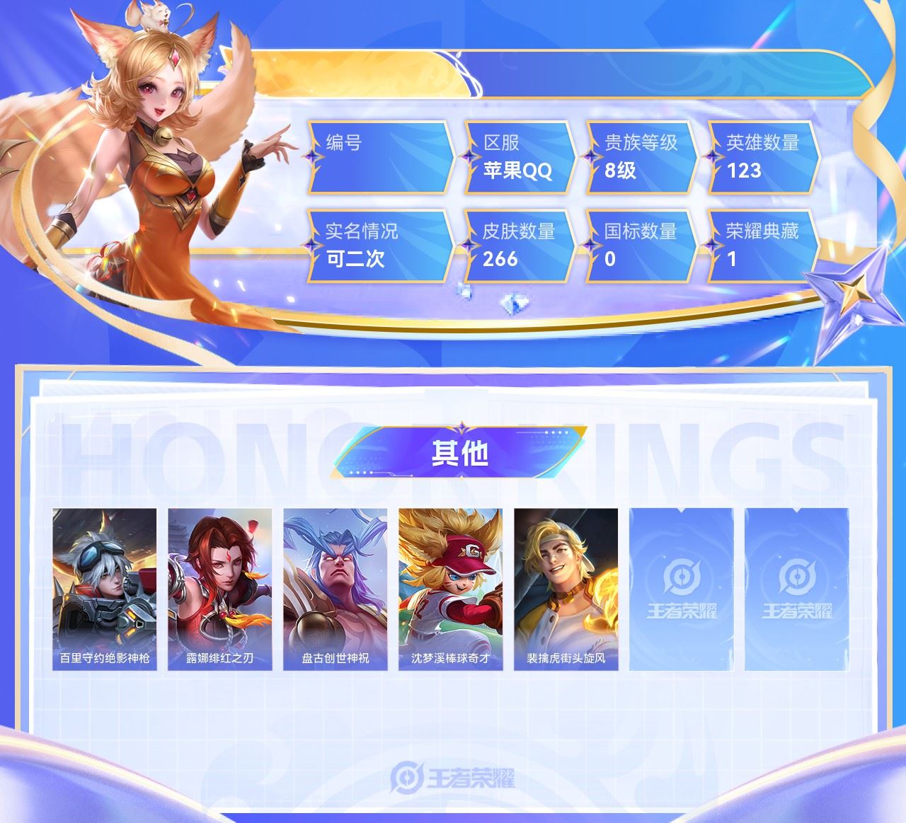 【终身找回包赔】【60YRIAF2G】典藏1传说8史诗95限定102英雄123皮肤266稀有英雄9贵族8级皮肤价值:201484 【荣耀典藏1】小乔天鹅之梦 【传说皮肤8】桑启鸣野蒿李信山海炽霜斩虞姬