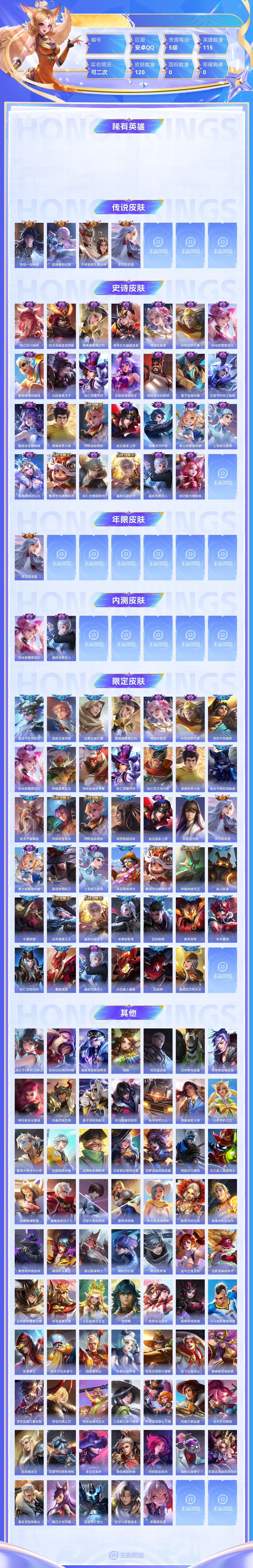 【终身找回包赔】【6ZLZKFCFH】传说4史诗27限定41英雄115皮肤120稀有英雄8贵族5级皮肤价值:76536 【传说皮肤4】李信一念神魔貂蝉猫影幻舞干将莫邪久胜战神李白凤求凰 【史诗皮肤27