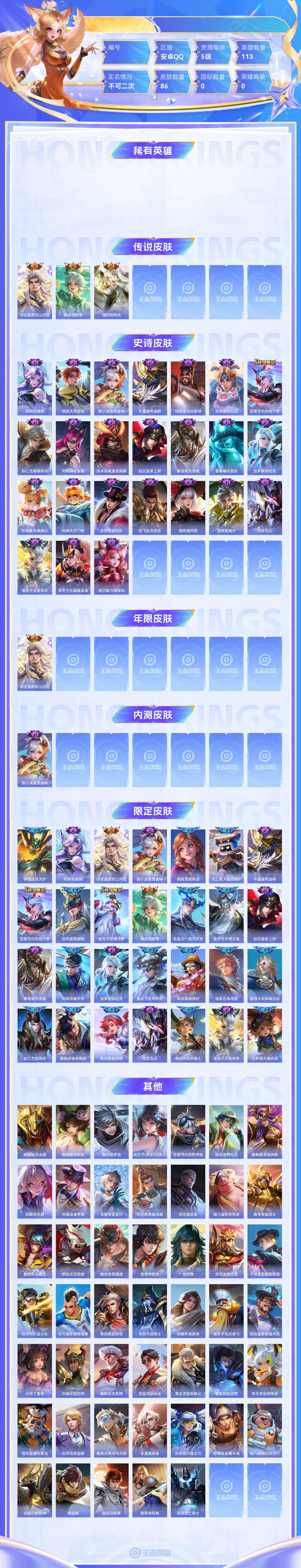 【终身找回包赔】【65LIQDGCC】传说3史诗24限定28英雄113皮肤86稀有英雄6贵族5级皮肤价值:55668 【传说皮肤3】司空震愿照山河定桑启鸣野蒿镜炽阳神光 【史诗皮肤24】阿轲化蝶舞杨戬
