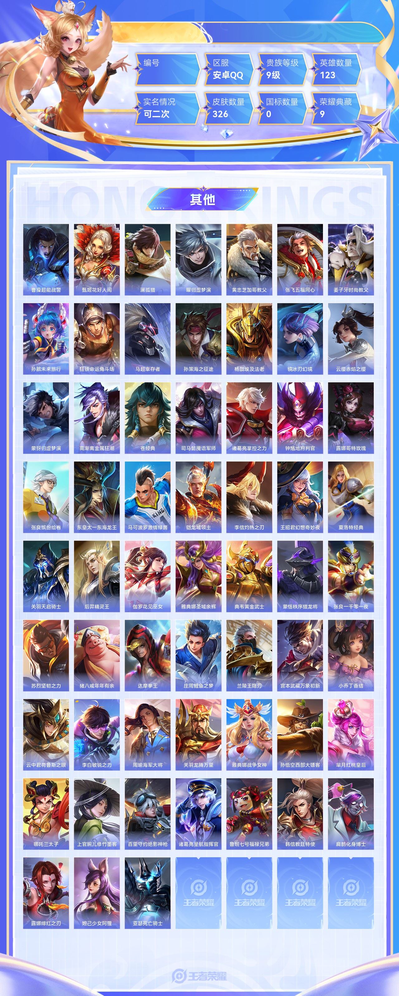 【终身找回包赔】【67K8LCDGA】无双2典藏9传说22史诗93限定83英雄123皮肤326稀有英雄10贵族9级皮肤价值:392900 【无双皮肤2】韩信群星魔术团武则天神器明辉仪 【荣耀典藏9】虞