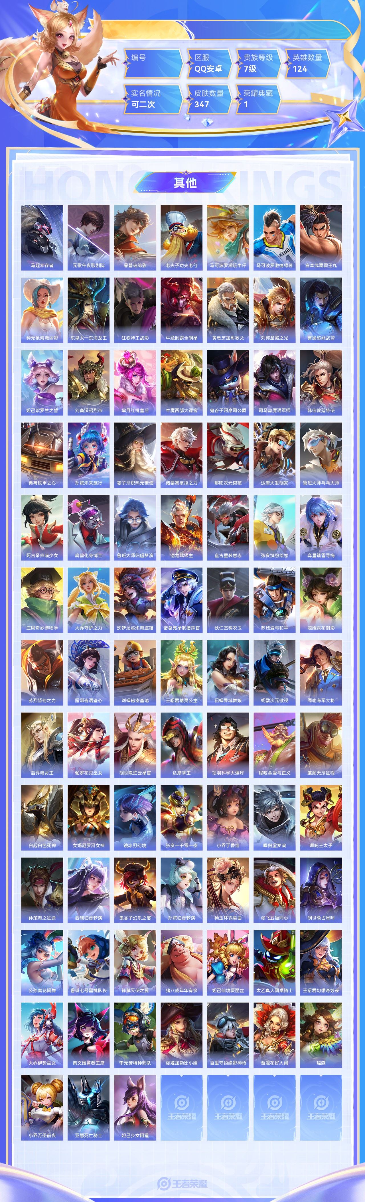 【终身找回包赔】【5级铭文数量0 召唤师等级0 白银Ⅰ 贵族V0】【终身找回包赔】【6QYQI2FCG】典藏1传说10史诗97限定112英雄124皮肤347稀有英雄8贵族7级总场次13371皮肤价值:232484 【荣耀典藏1】李白鸣剑曳影 【传说皮肤10】澜愿照九