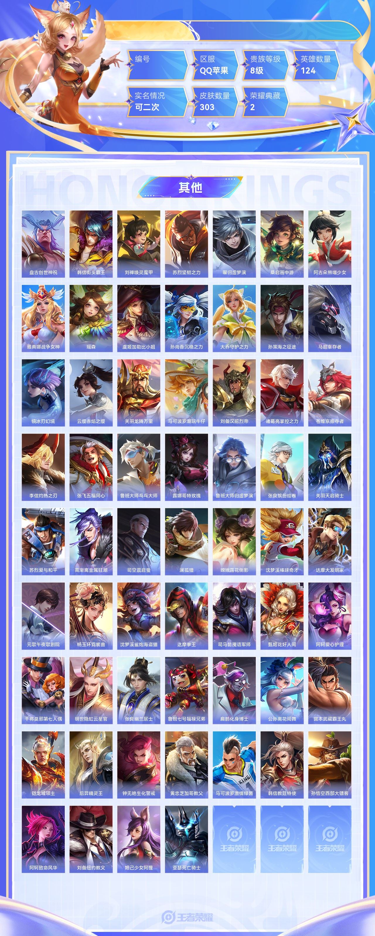 【终身找回包赔】【5级铭文数量0 召唤师等级0 白银Ⅰ 贵族V0】【终身找回包赔】【6QYQIGD22】珍品传说1无双1典藏2传说22史诗68限定101英雄124皮肤303稀有英雄8贵族8级总场次10959皮肤价值:235432 【珍品传说1】马可波罗怪盗基德 【无
