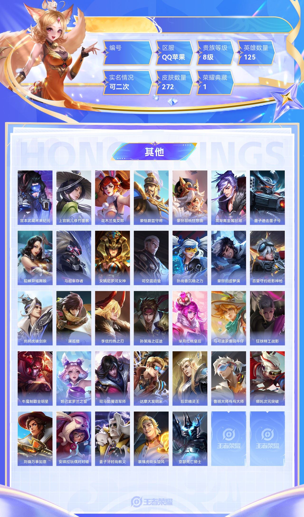 【终身找回包赔】【5级铭文数量0 召唤师等级0 白银Ⅰ 贵族V0】【终身找回包赔】【6QYQIFBCG】珍品传说9典藏1传说27史诗71限定93英雄125皮肤272稀有英雄9贵族8级总场次7532皮肤价值:202964 【珍品传说9】暃朽木白哉宫本武藏黑崎一护瑶大耳