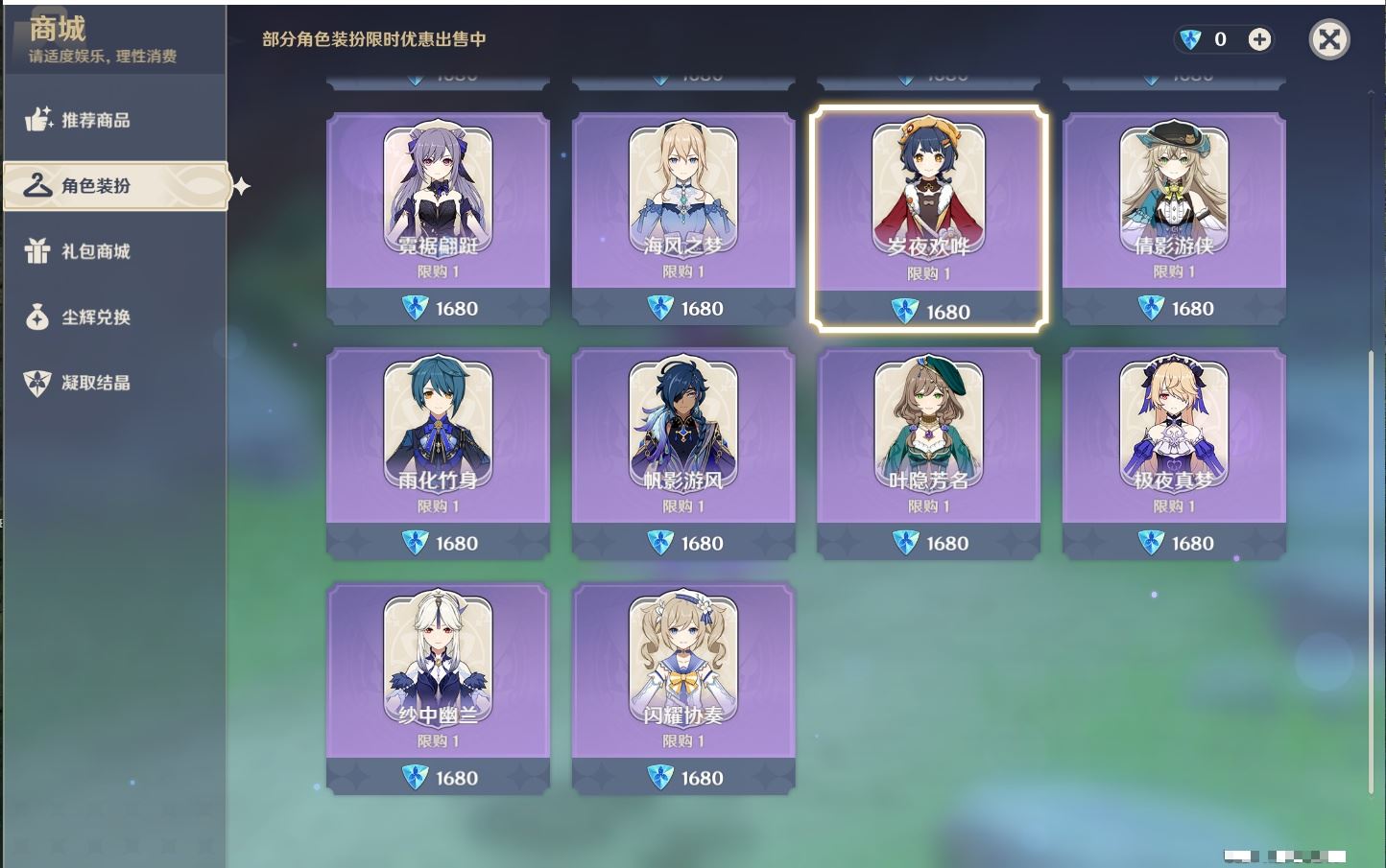 您在该区服还未挑选任何商品~