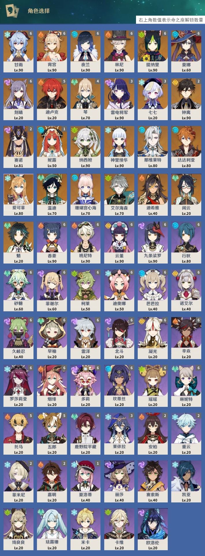 【终身找回包赔】【IPPM7BC21】58级,116黄,男主,25个五星角色:满命甘雨,满命宵宫,满命夜兰,满命林尼,满命提纳里,满命莫娜,满命刻晴,5命迪卢克,4命琴,3命雷电将军,3命七七,2命钟