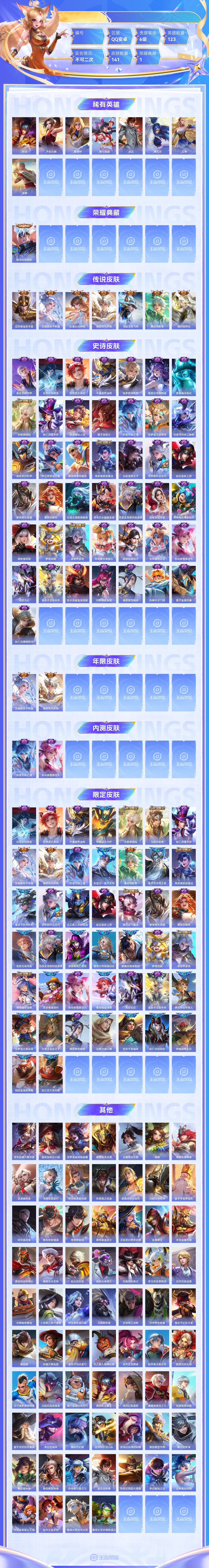 【终身找回包赔】【5级铭文数量0 召唤师等级0 白银Ⅰ 贵族V0】【终身找回包赔】【6PNJ3GC21】典藏1传说7史诗43限定44英雄123皮肤141稀有英雄8贵族6级总场次6744皮肤价值:113984 【荣耀典藏1】韩信弑枪猎影 【传说皮肤7】后羿黄金射手座女