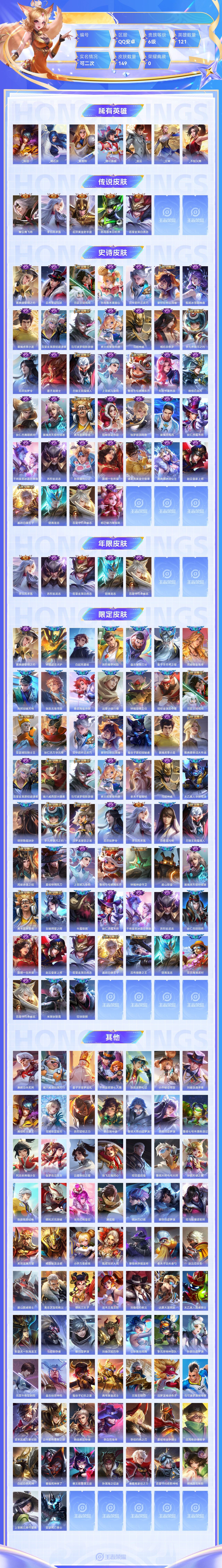 【终身找回包赔】【5级铭文数量0 召唤师等级0 白银Ⅰ 贵族V0】【终身找回包赔】【6PNJ3ACEA】传说5史诗39限定59英雄121皮肤149稀有英雄7贵族6级总场次5908皮肤价值:88956 【传说皮肤5】曜云鹰飞将李白凤求凰后羿黄金射手座孙尚香末日机甲百里