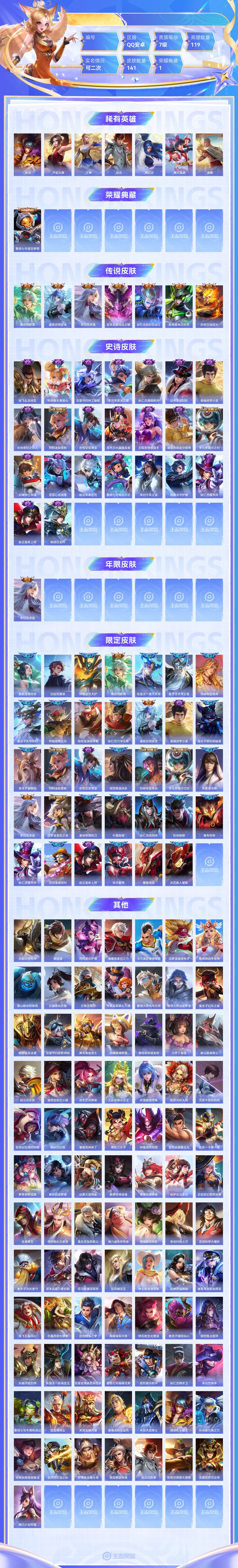 【终身找回包赔】【5级铭文数量0 召唤师等级0 白银Ⅰ 贵族V0】【终身找回包赔】【6PNJ3AEAA】典藏1传说7史诗23限定34英雄119皮肤141稀有英雄7贵族7级总场次3344皮肤价值:98292 【荣耀典藏1】鲁班七号星空梦想 【传说皮肤7】桑启鸣野蒿虞姬
