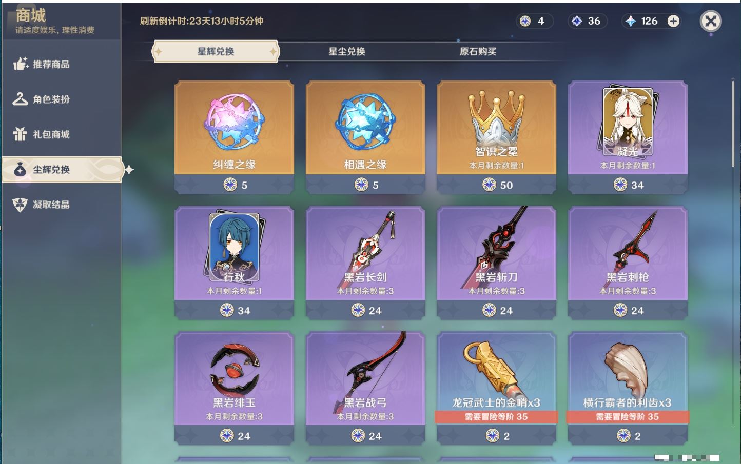 【终身找回包赔】【IPPM7ACAD】26级,3黄,女主,2个五星角色:1命莫娜,钟离,0个五星武器:纠缠之源0,原石126圣遗物164【邮箱不出售】【邮箱不出售】【官方截图】