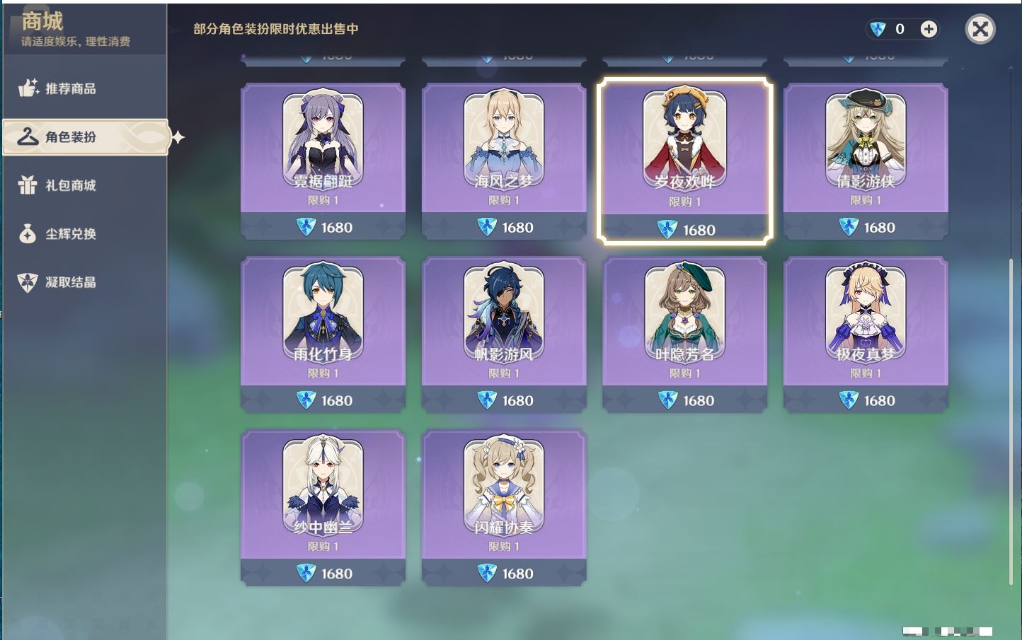 您在该区服还未挑选任何商品~