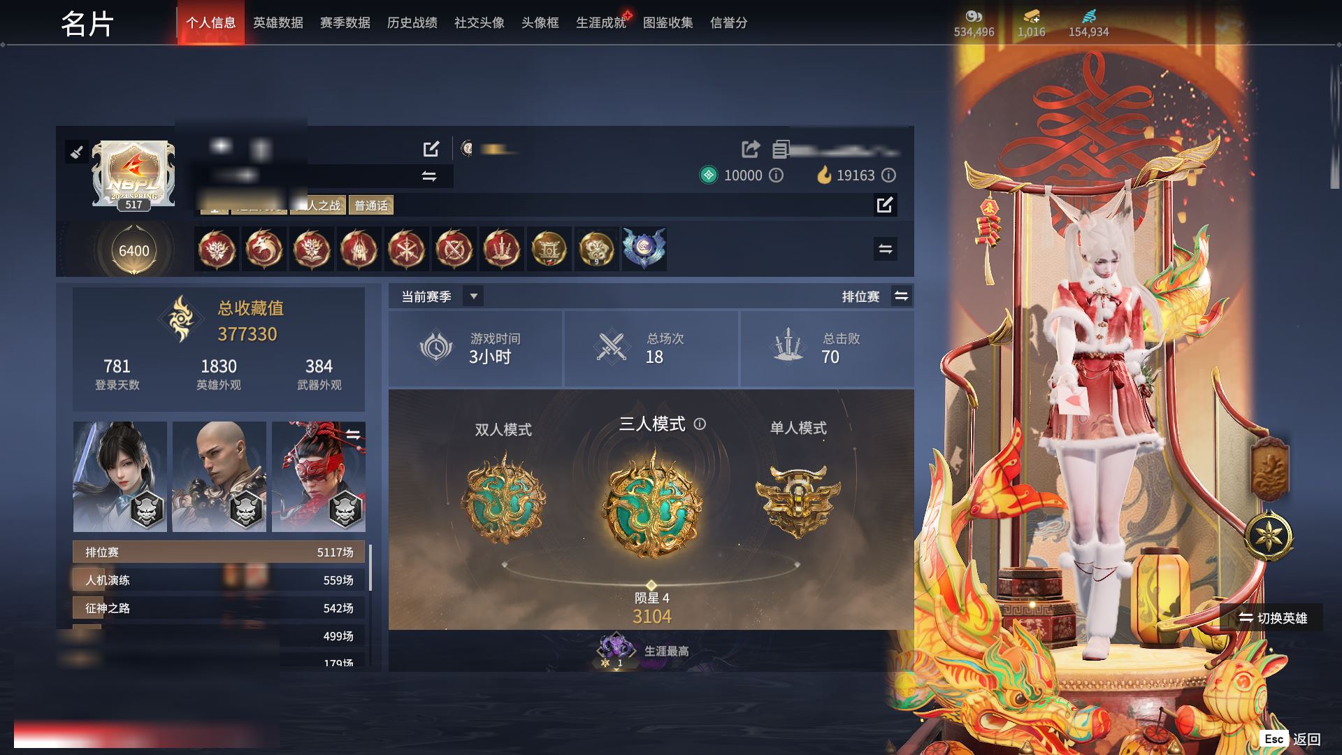 【终身找回包赔】【IPPM7ADCB】19红668金|等级517|陨星|幻丝154934|金砖1016|通行证Lv.27红色神品:赤皓新囍,初代玄女,星辉魔纱,戎金狼,熛怒炼火,墨离,绝代风华,沙漠香