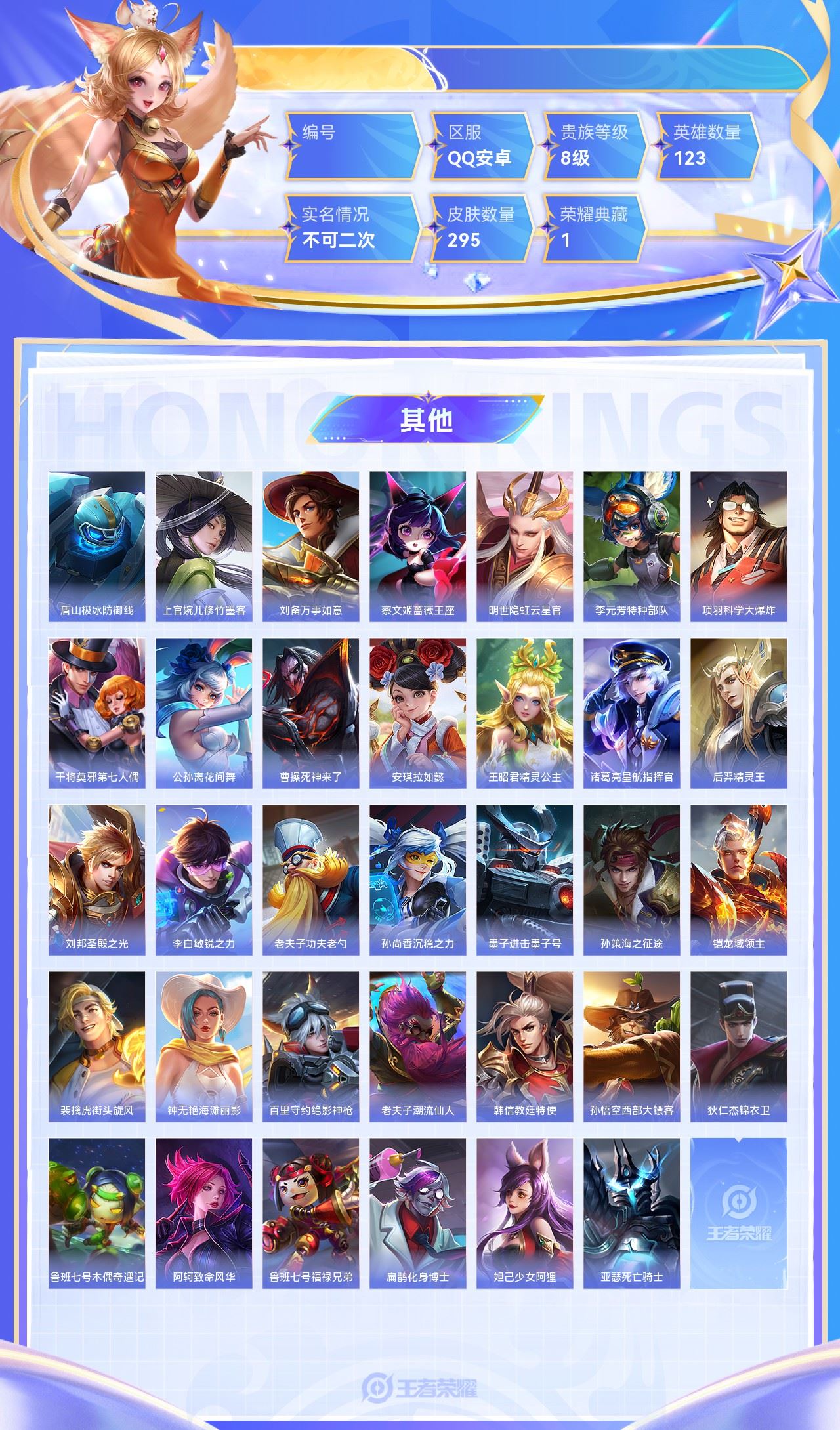 【终身找回包赔】【5级铭文数量0 召唤师等级0 白银Ⅰ 贵族V0】【终身找回包赔】【6ZKKKBAC1】无双1典藏1传说16史诗74限定90英雄123皮肤295稀有英雄8贵族8级总场次13665皮肤价值:198036 【无双皮肤1】韩信群星魔术团 【荣耀典藏1】李白