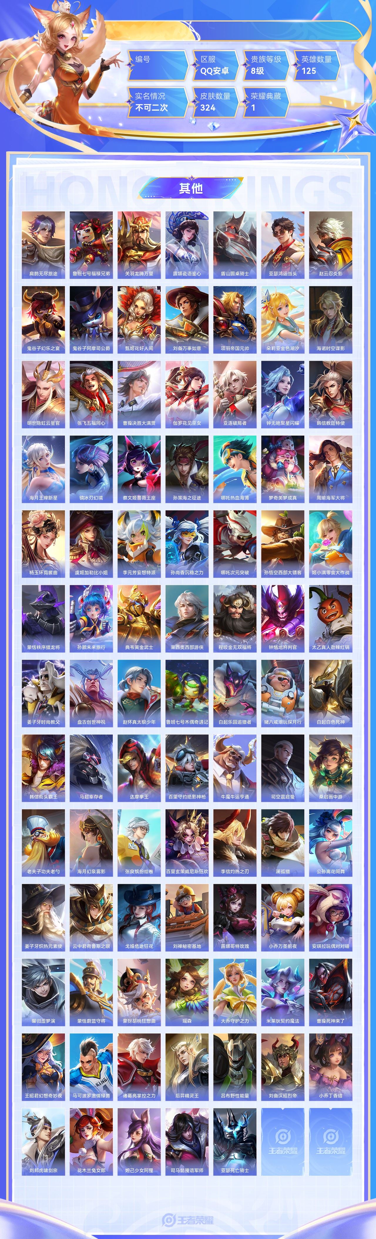 【终身找回包赔】【5级铭文数量0 召唤师等级0 白银Ⅰ 贵族V0】【终身找回包赔】【6ZKKKFHEC】珍品传说2无双1典藏1传说12史诗95限定99英雄125皮肤324稀有英雄9贵族8级总场次5048皮肤价值:216768 【珍品传说2】宫本武藏黑崎一护安琪拉酷洛