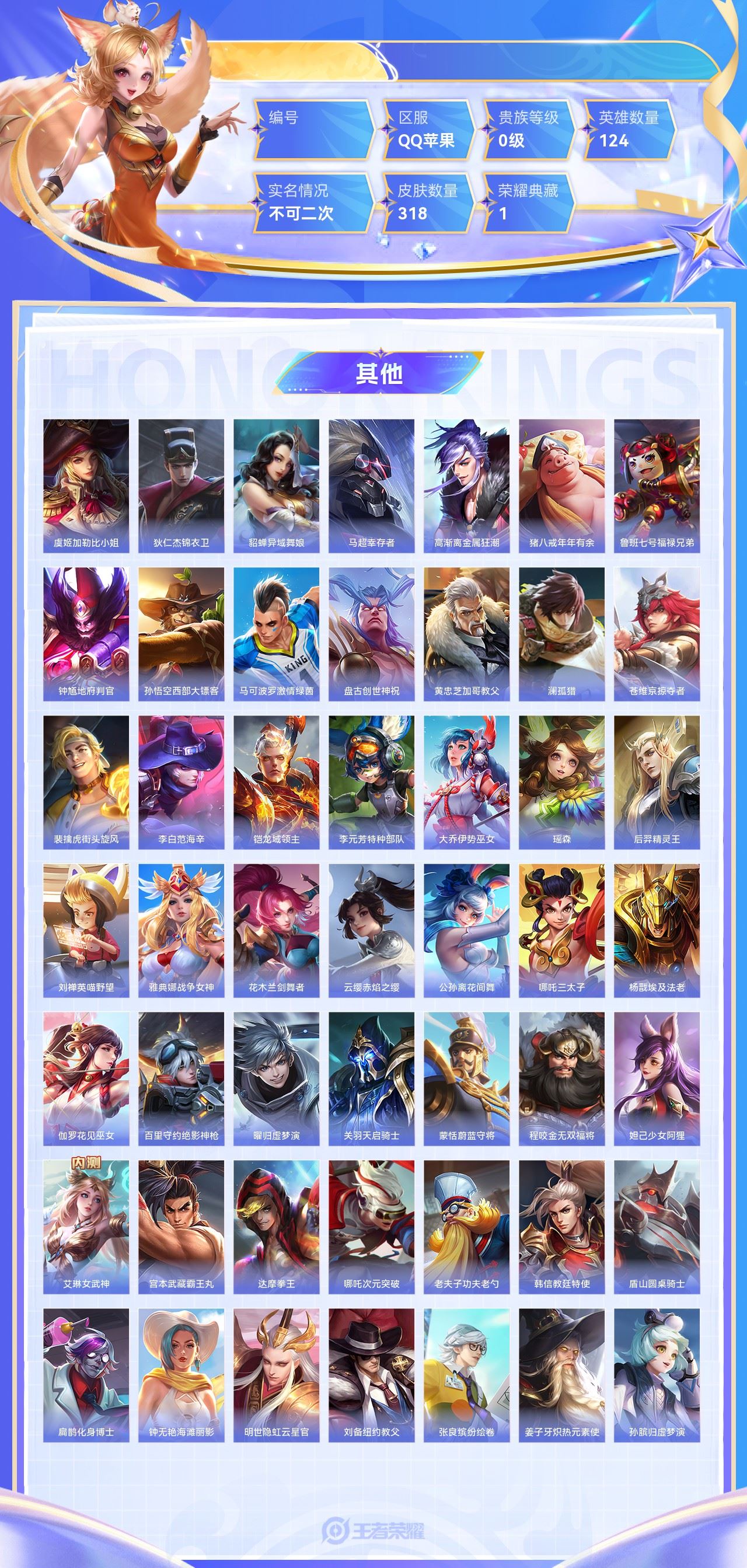 【终身找回包赔】【5级铭文数量0 召唤师等级0 白银Ⅰ 贵族V0】【终身找回包赔】【6ZKKK1EHG】典藏1传说10史诗81限定105英雄124皮肤318稀有英雄8贵族0级总场次11518皮肤价值:218488 【荣耀典藏1】貂蝉幻阙歌 【传说皮肤10】公孙离云诺