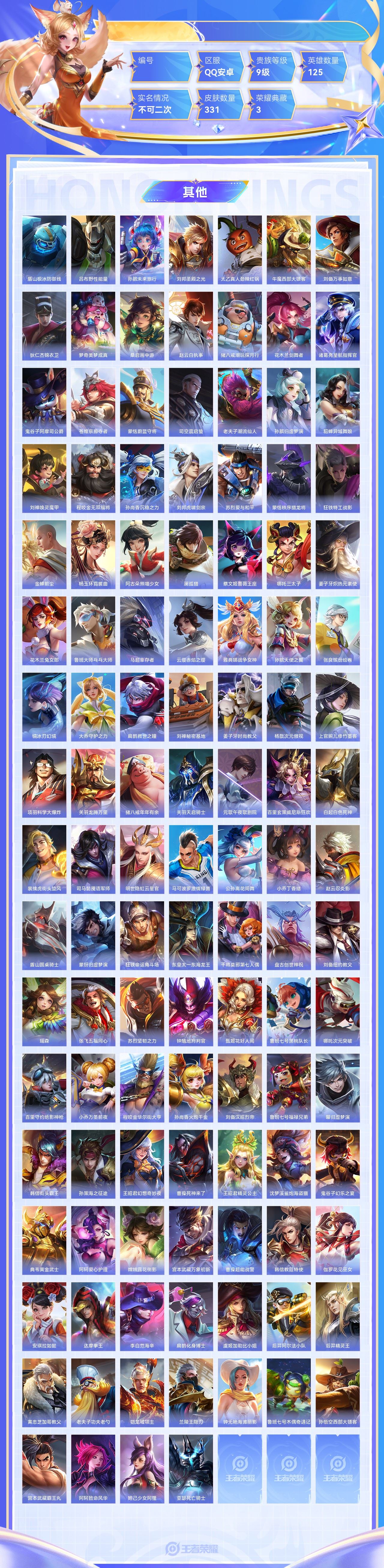 【终身找回包赔】【5级铭文数量0 召唤师等级0 白银Ⅰ 贵族V0】【终身找回包赔】【6ZKKK1GBD】珍品传说1无双1典藏3传说24史诗99限定106英雄125皮肤331稀有英雄9贵族9级总场次15542皮肤价值:274468 【珍品传说1】孙策时之奇旅 【无双皮