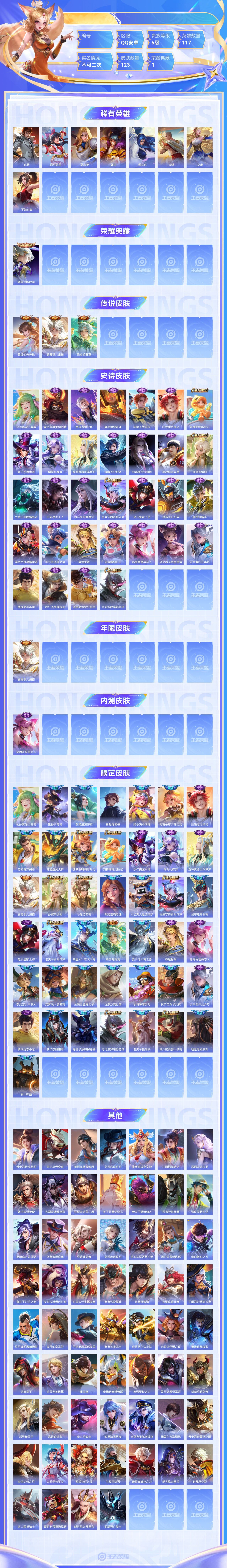 【终身找回包赔】【5级铭文数量0 召唤师等级0 白银Ⅰ 贵族V0】【终身找回包赔】【6ZJN0EC12】典藏1传说3史诗32限定43英雄117皮肤123稀有英雄8贵族6级总场次2904皮肤价值:91808 【荣耀典藏1】铠银白咏叹调 【传说皮肤3】云缨幻光神枪澜愿照
