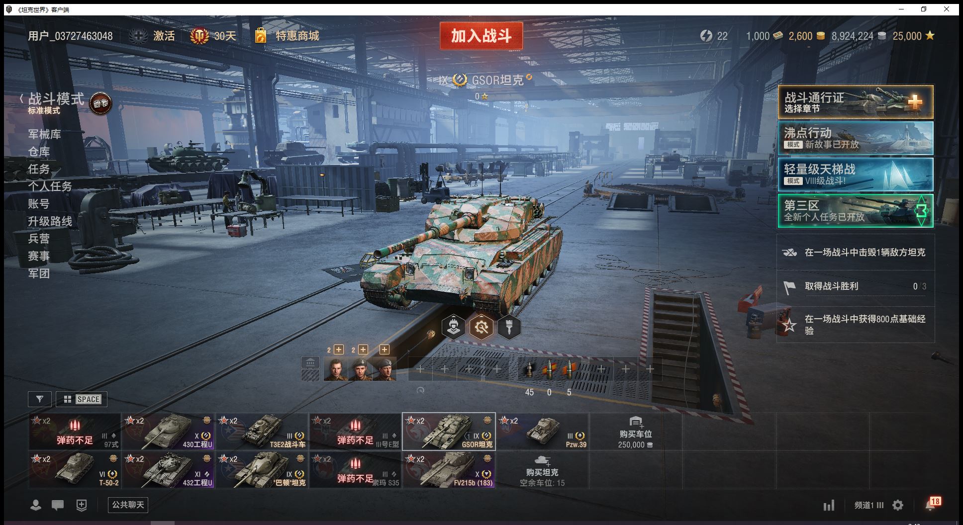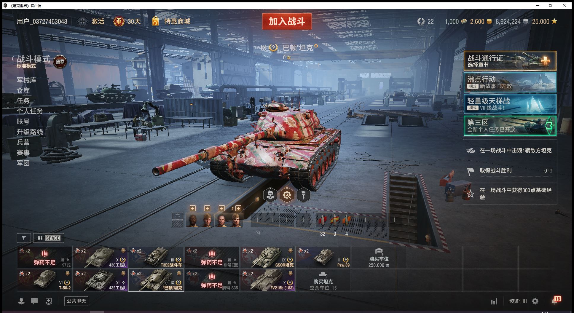11级432工程U10级183430U2辆9级金币车巴顿坦克GSOR坦克6金T502金币2600(J28