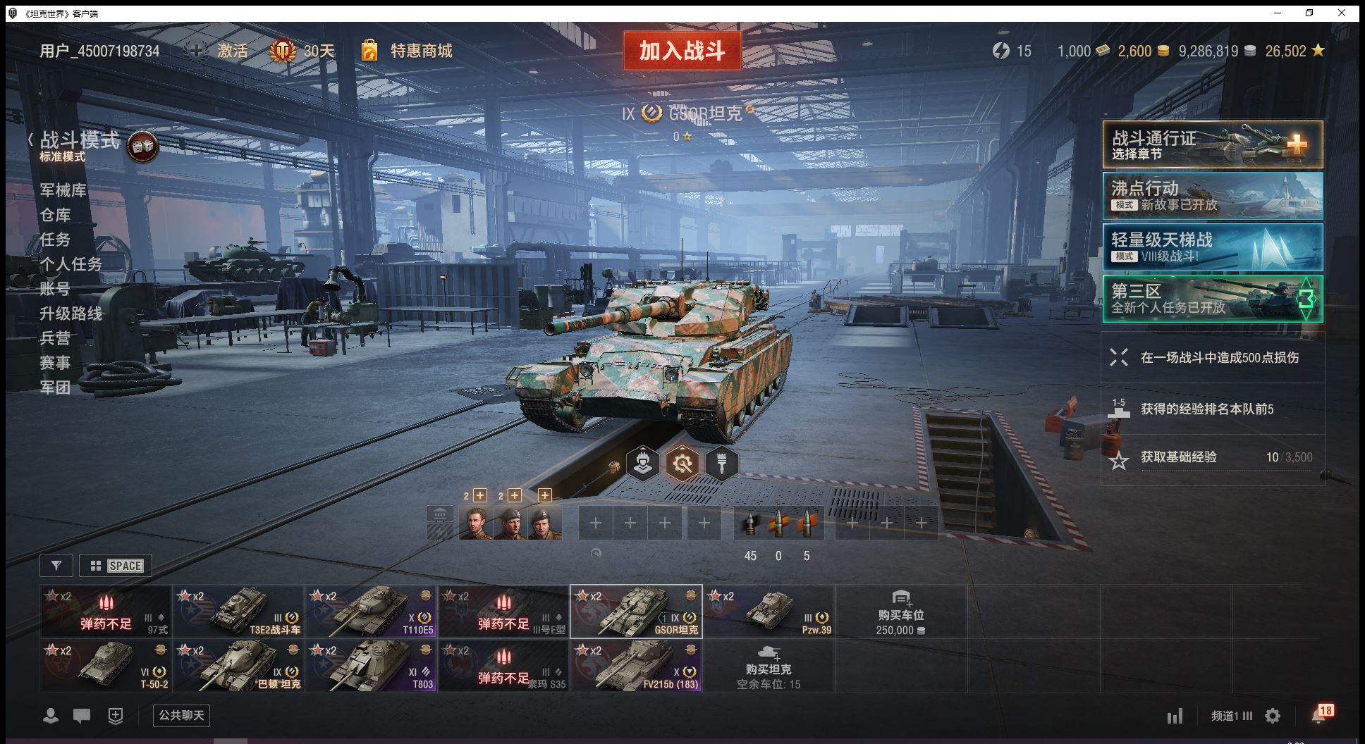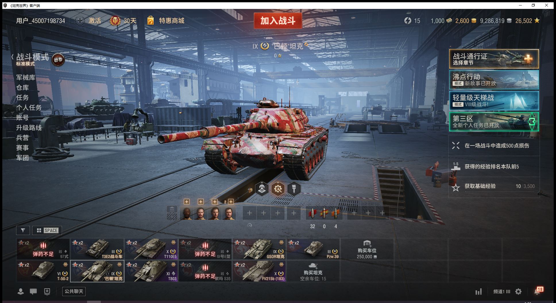 11级T80310级183E52辆9级金币车巴顿坦克GSOR坦克6金T502金币2600全局2.6万(J29