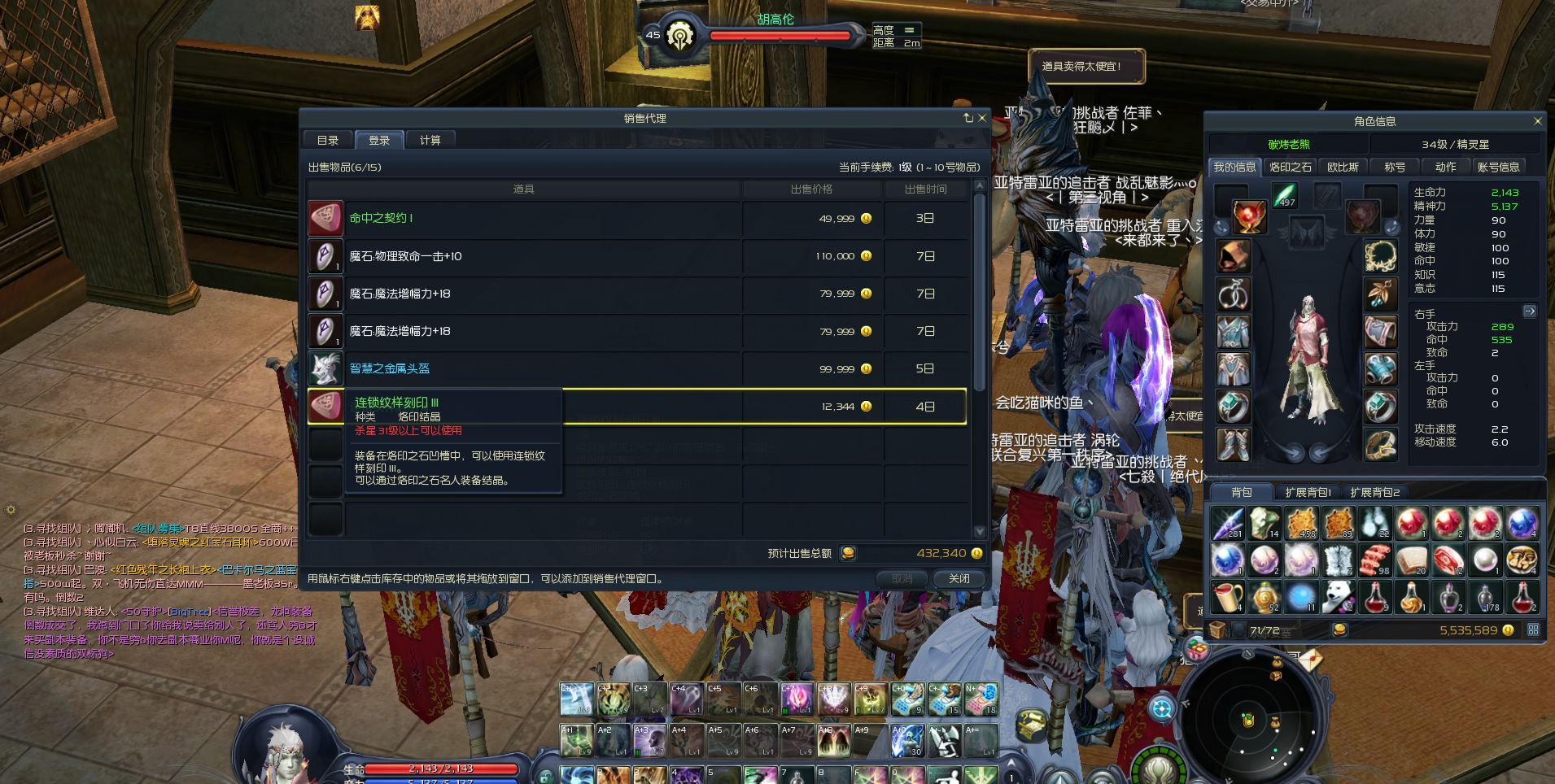 34级精灵,号上有553w基纳及一背包材料
