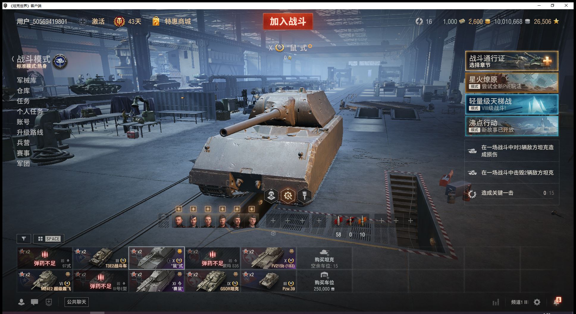 11级囊鼠10级183鼠式1辆9级金币车GSOR坦克6金超级霞飞金币2600全局2.6万(J40)