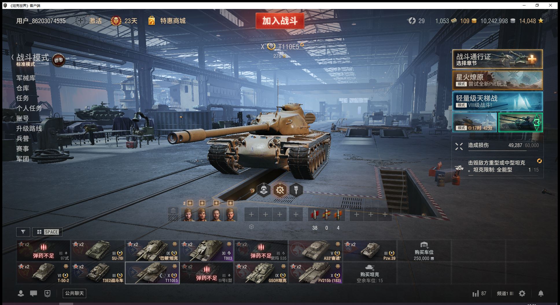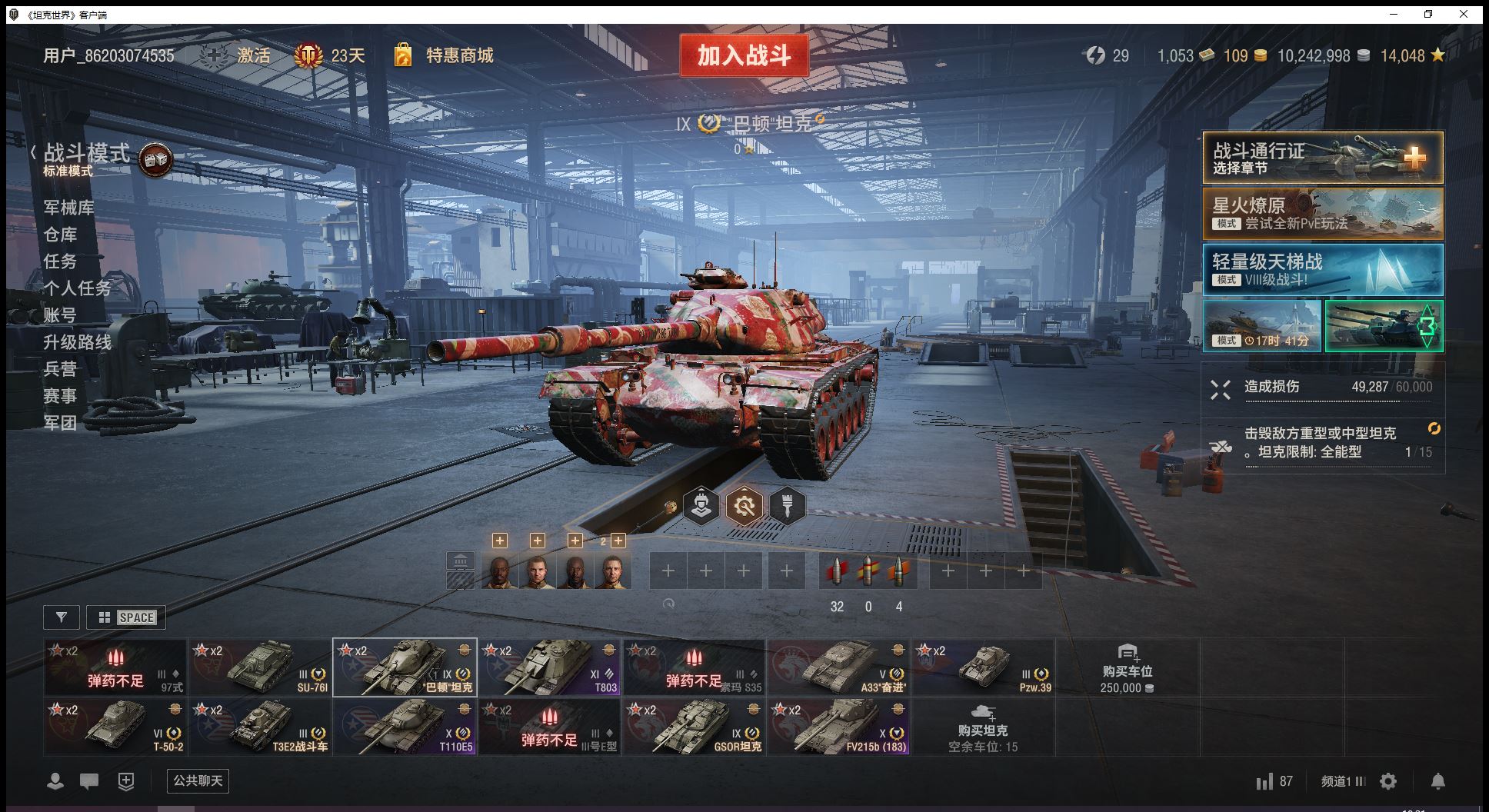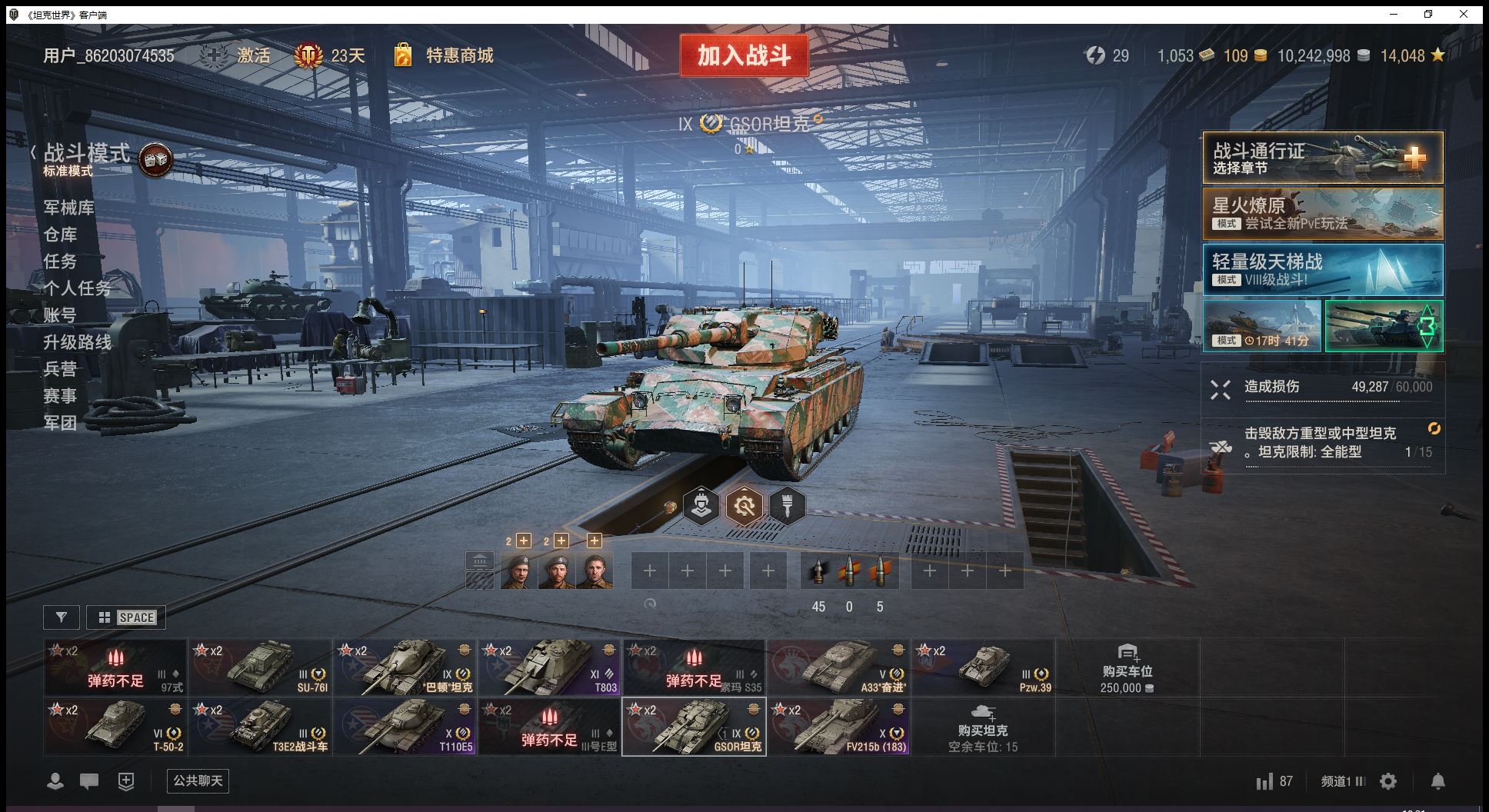 11级T80310级183E52辆9级金币车巴顿坦克GSOR坦克6金T5025金奋进全局1.4万(J46)
