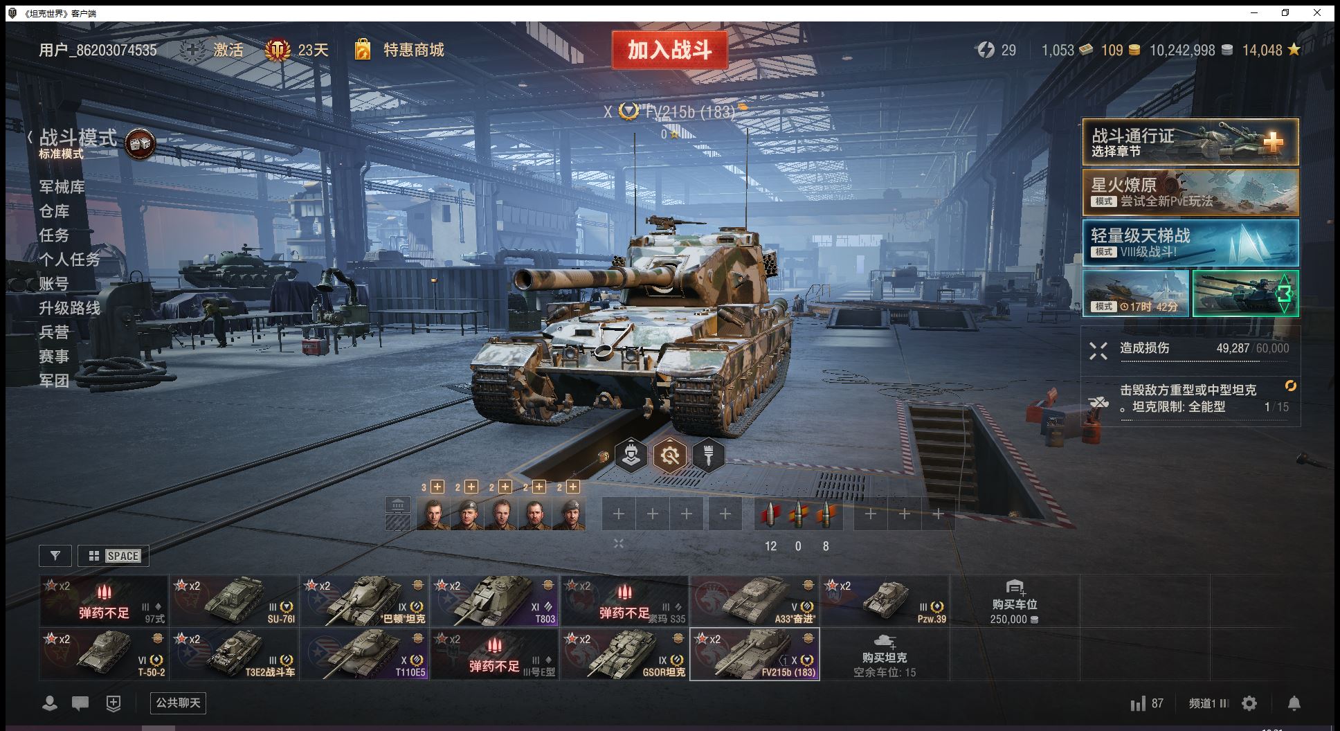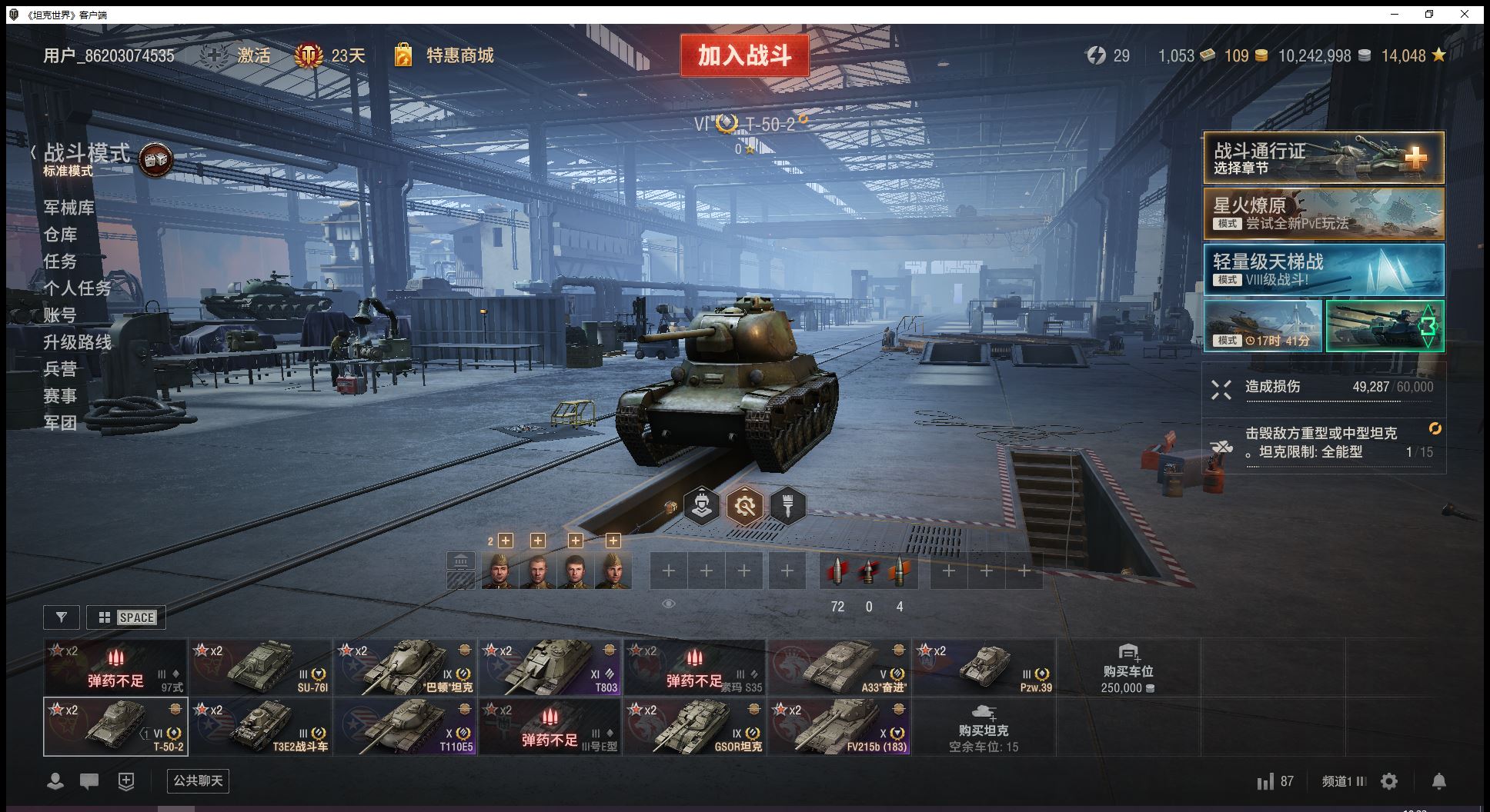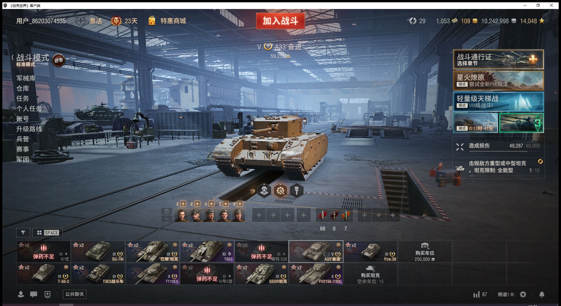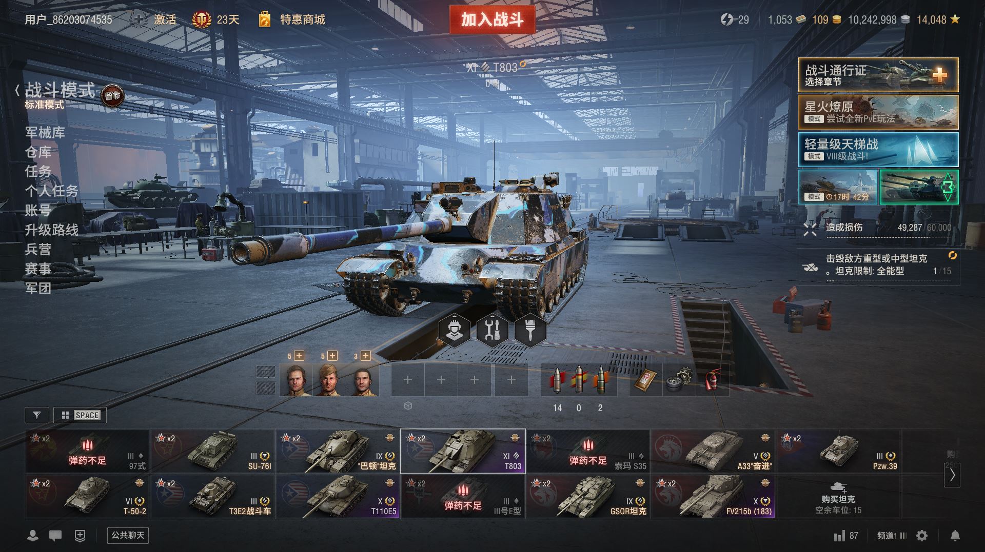 11级T80310级183E52辆9级金币车巴顿坦克GSOR坦克6金T5025金奋进全局1.4万(J46)