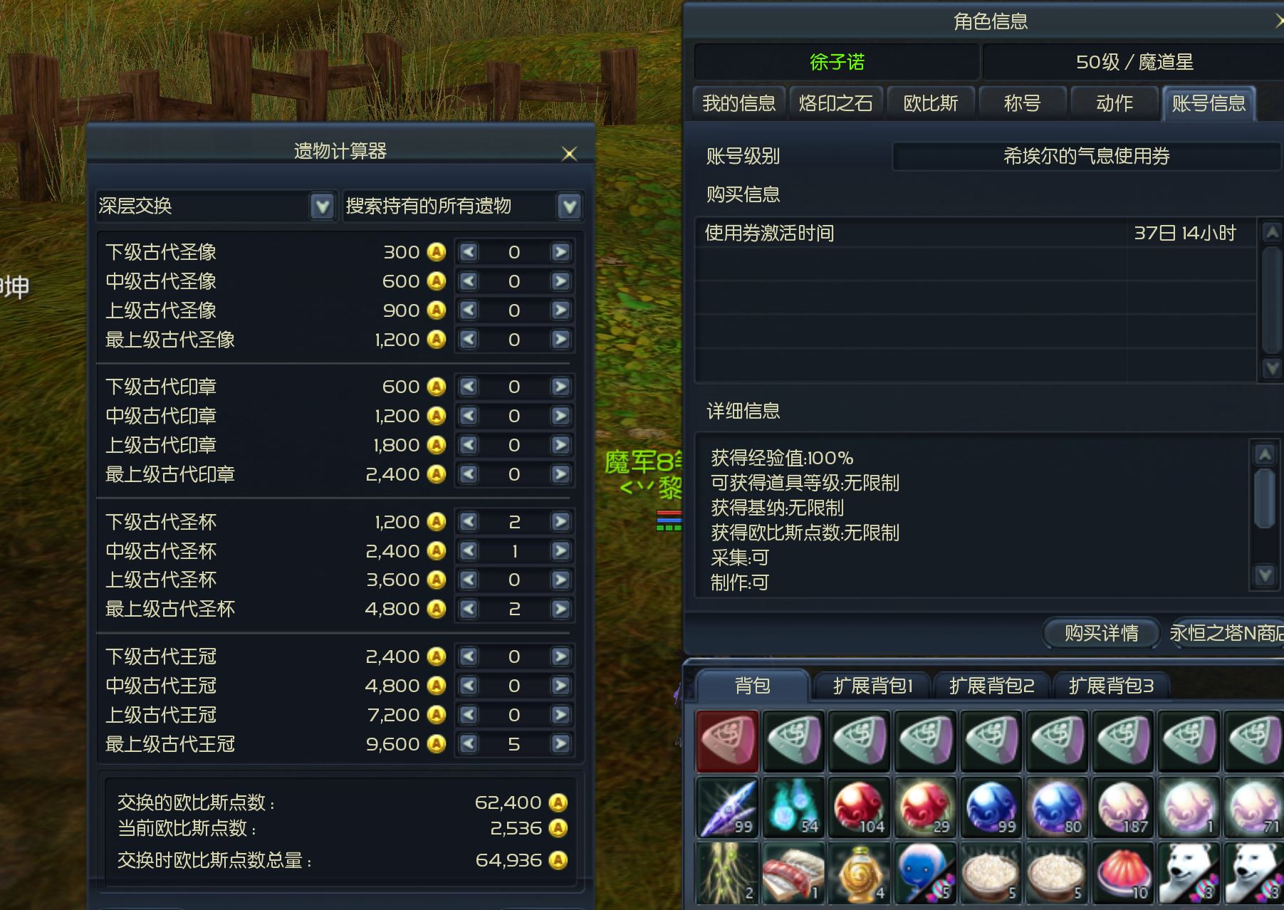 满级魔道,36铸币强10,撒旦混搭。obs6万多。月卡35天