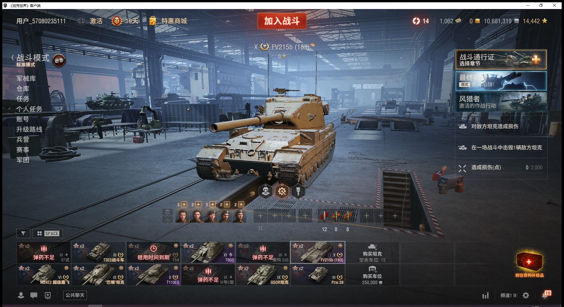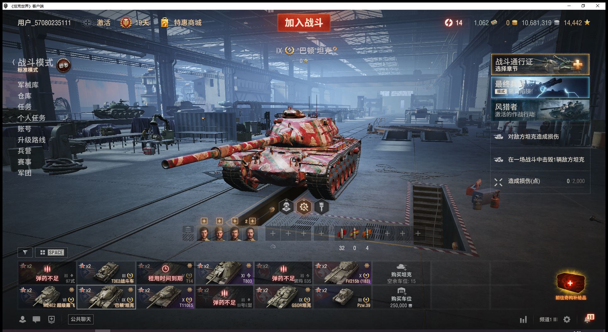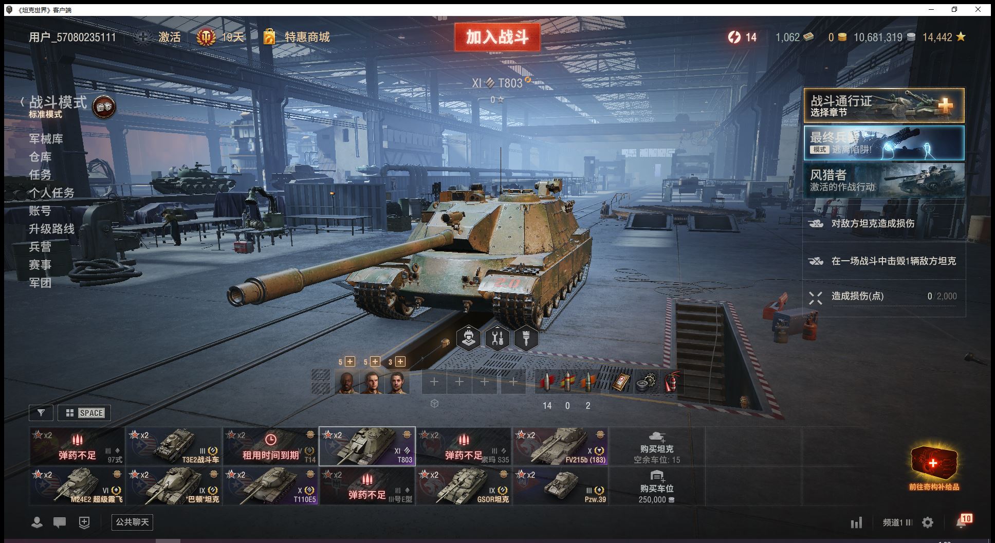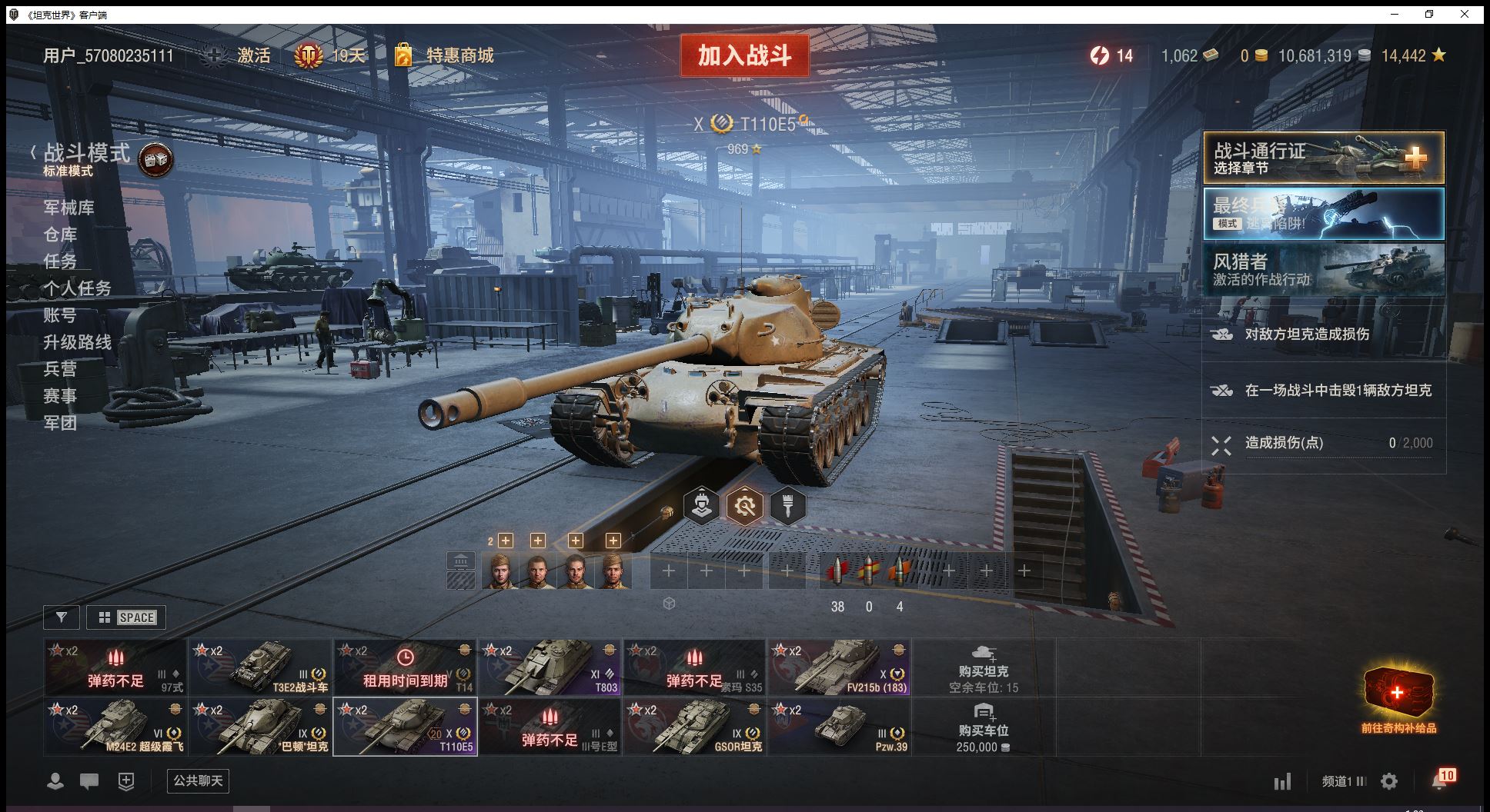 11级T80310级183E52辆9级金币车巴顿坦克GSOR坦克6金超级霞飞全局1.4万(J47)