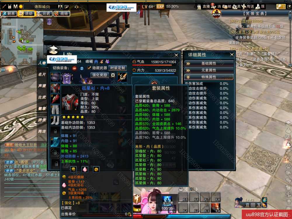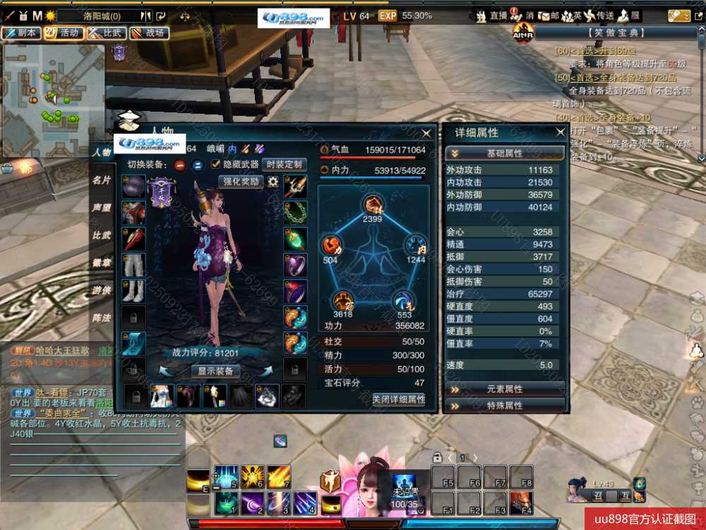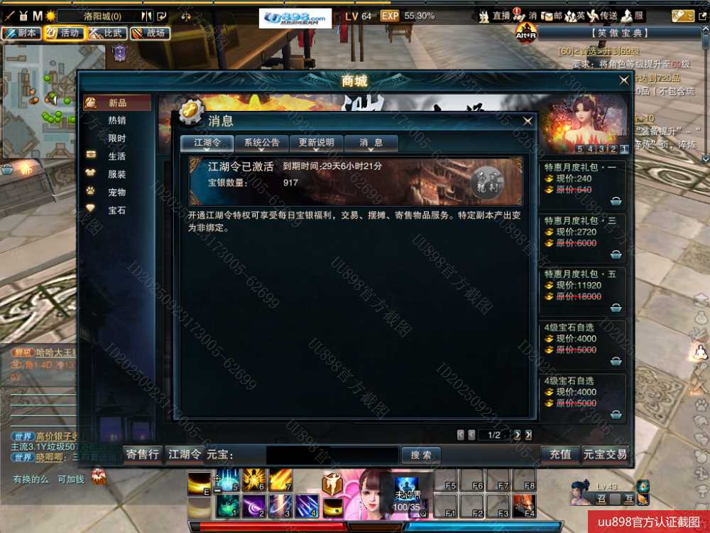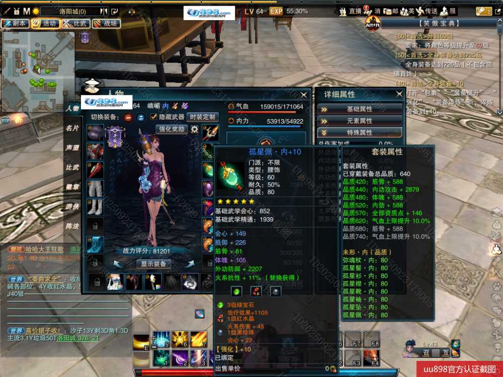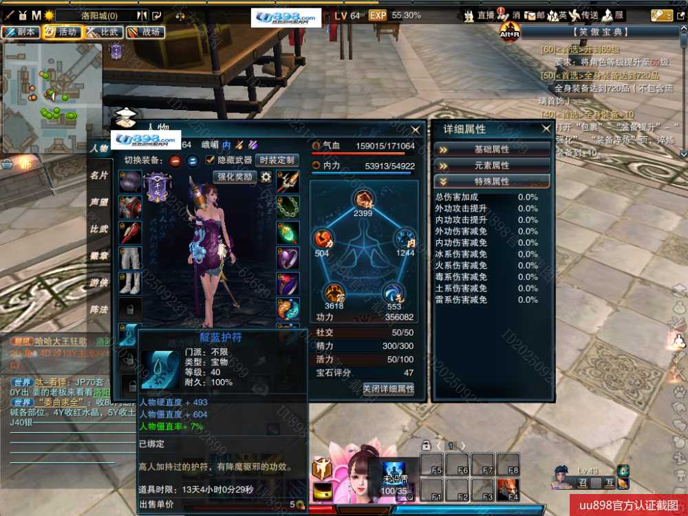 【帐号出售 峨嵋 女 角色等级64 江湖令剩余天数29 】出8个4级.23个3级宝石的峨眉号