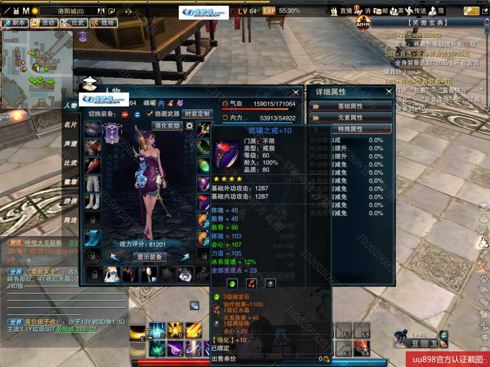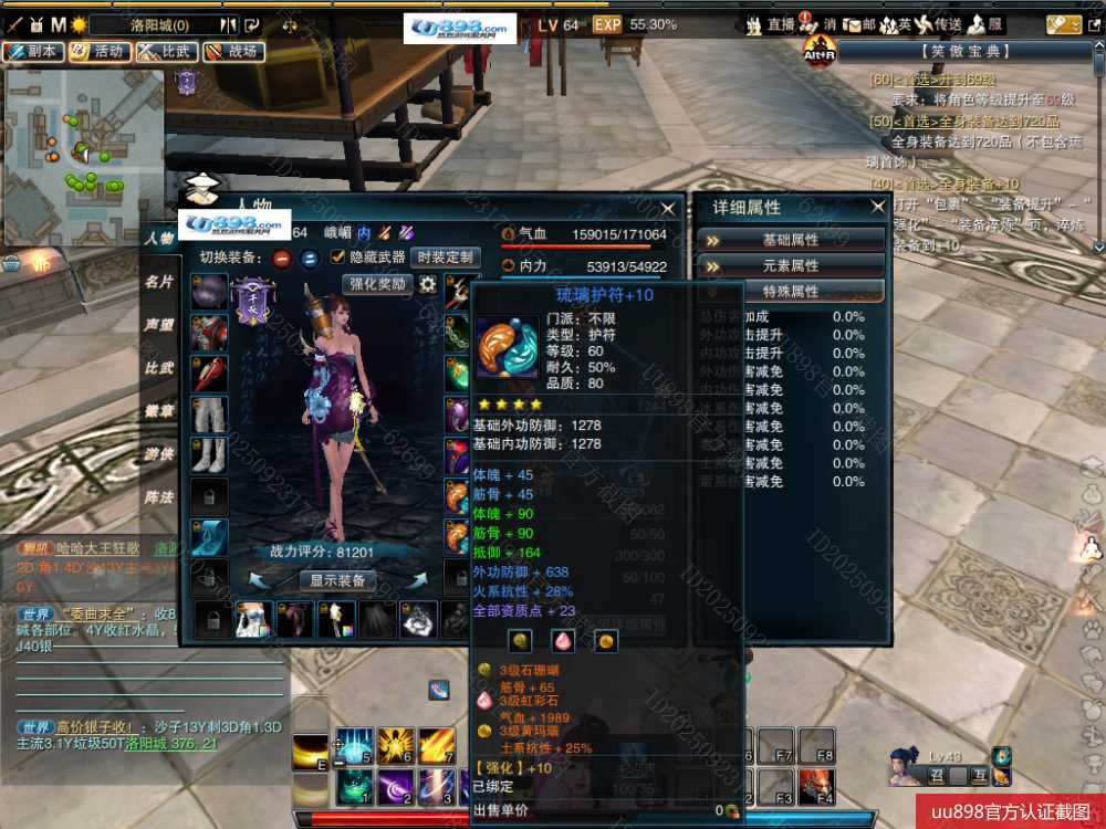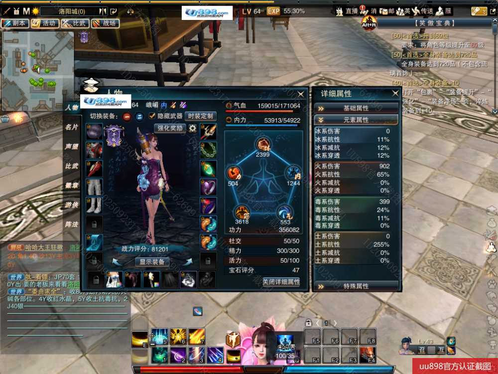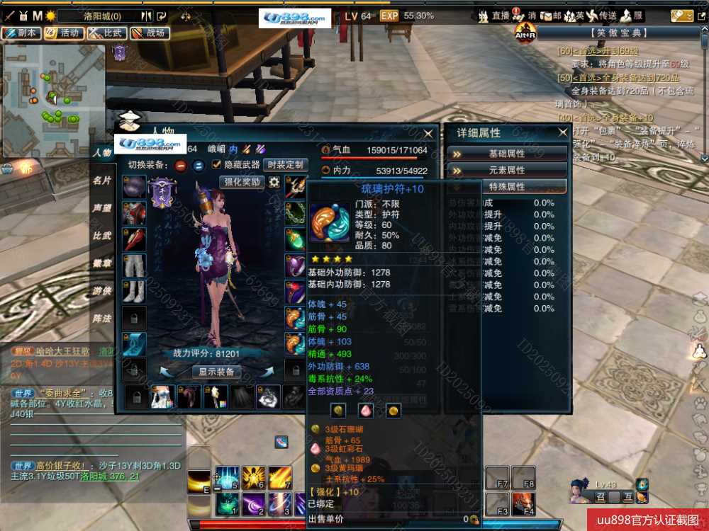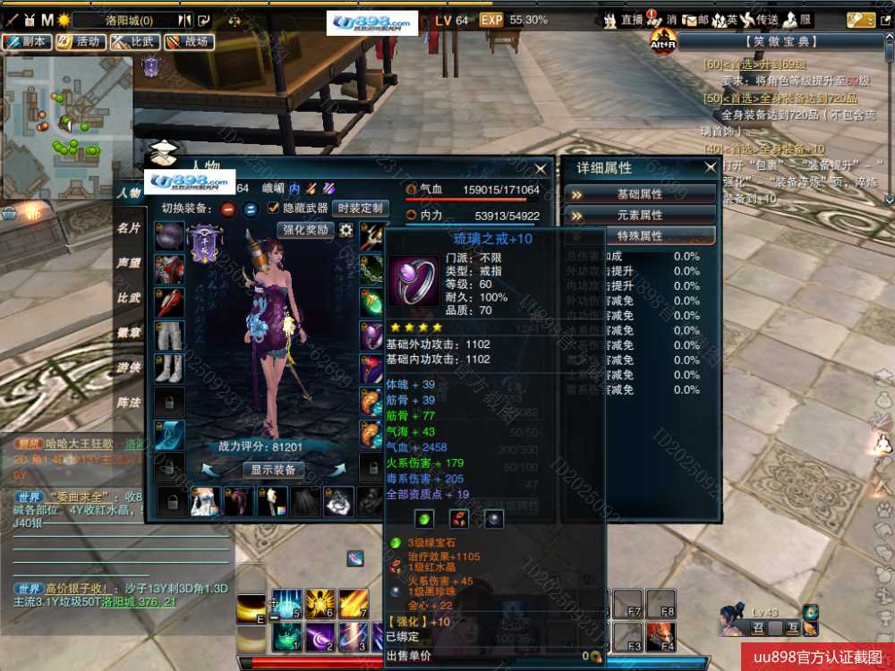 【帐号出售 峨嵋 女 角色等级64 江湖令剩余天数29 】出8个4级.23个3级宝石的峨眉号