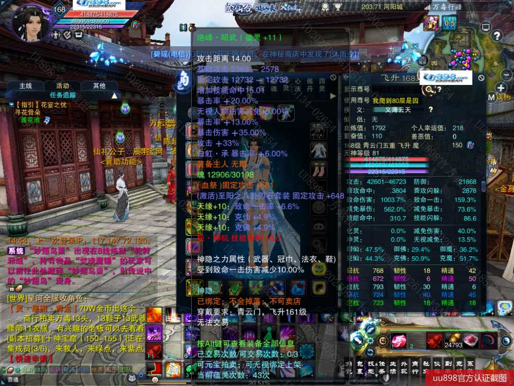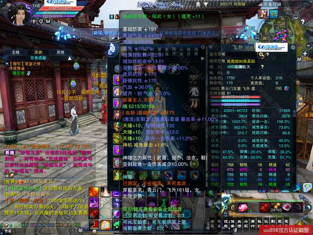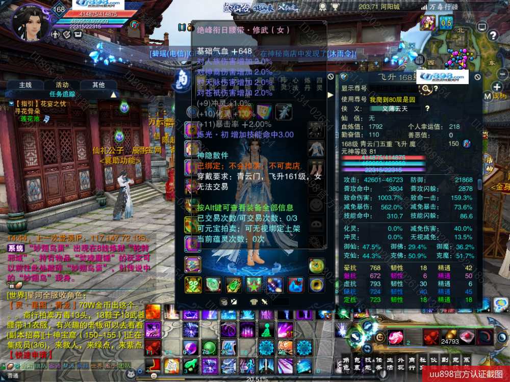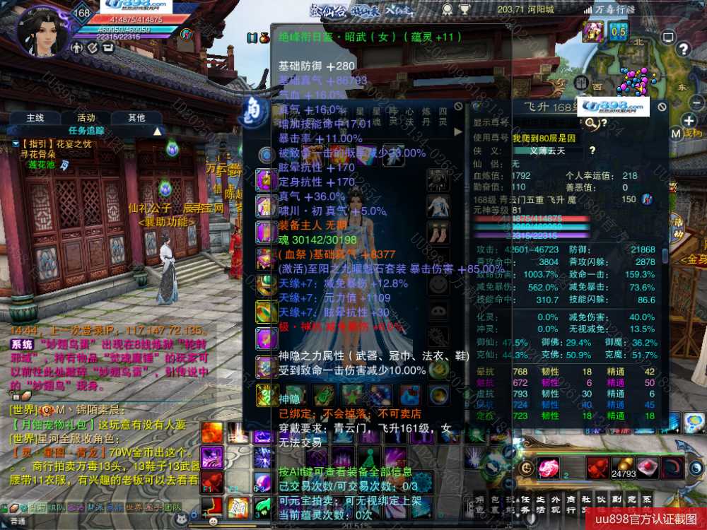 【一个月内,找回包赔】【青云 五重修真 女 角色等级168 魔 人族 】168级青云号