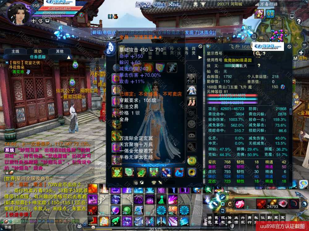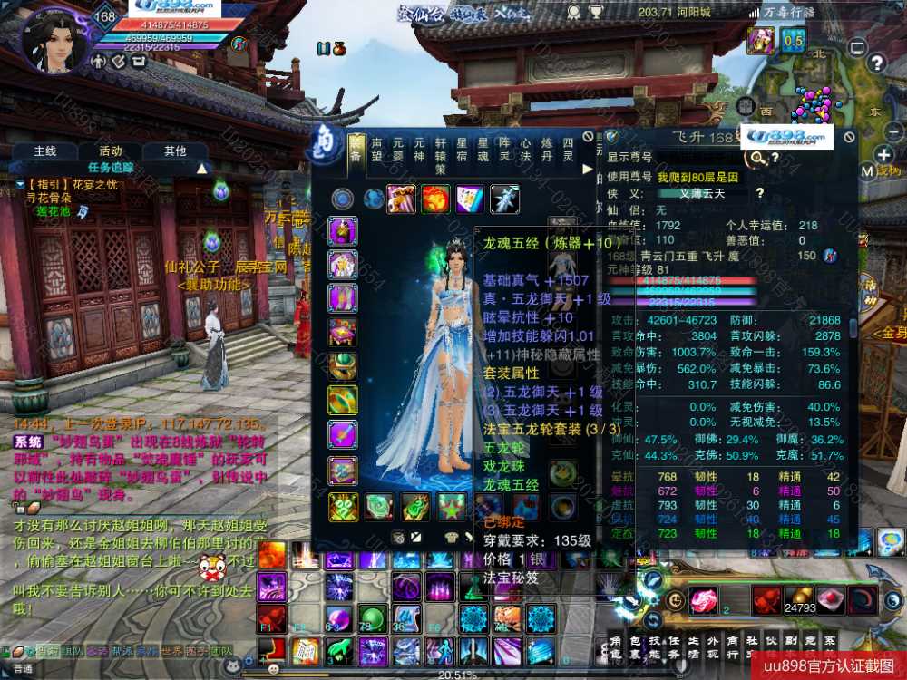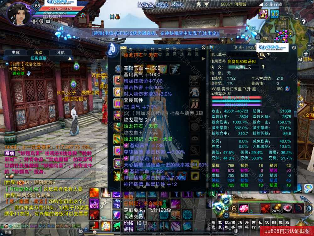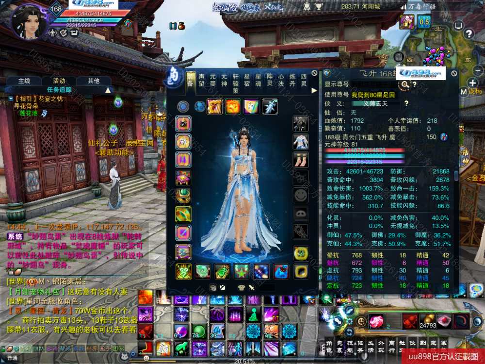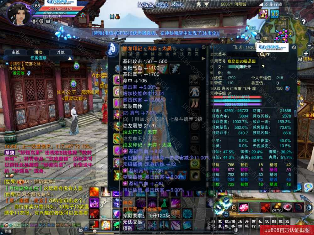 【一个月内,找回包赔】【青云 五重修真 女 角色等级168 魔 人族 】168级青云号